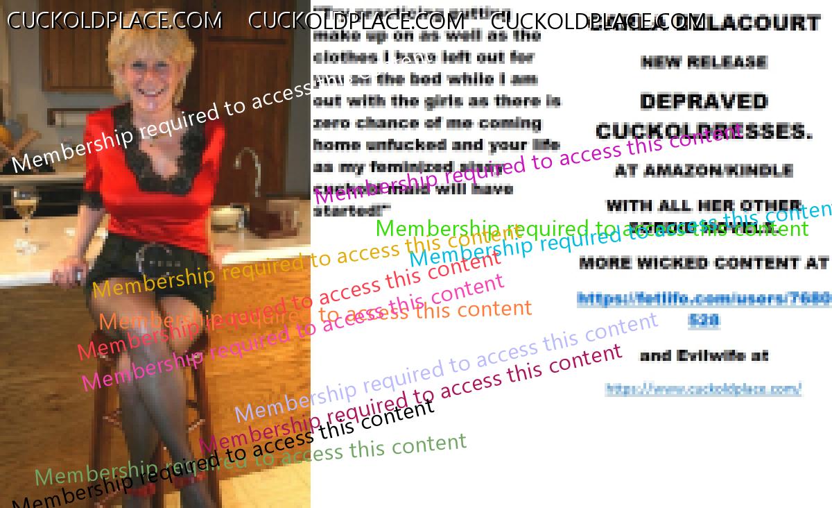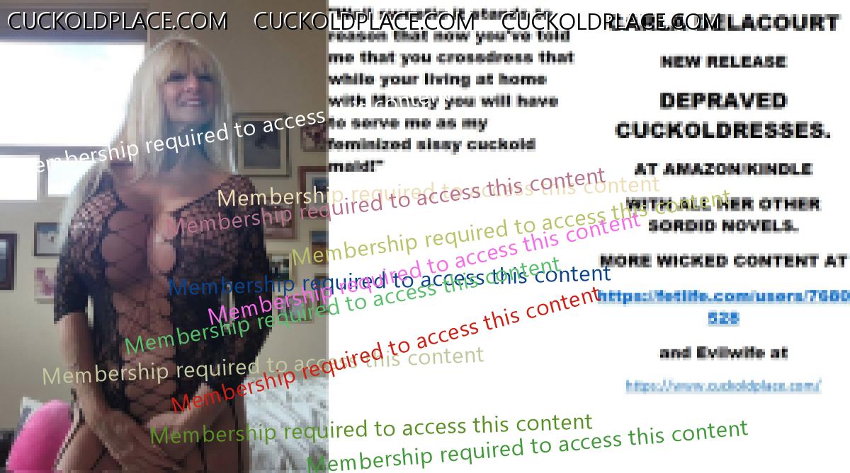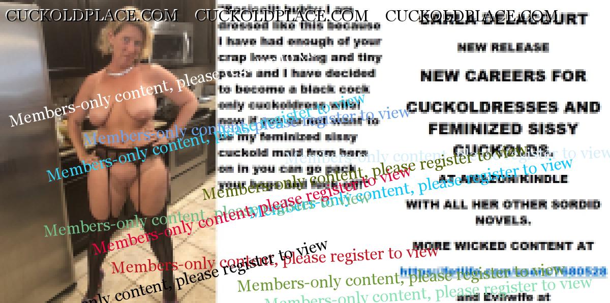 Morning all CARLA DELACOURT NEW RELEASE NEW CAREERS FOR CUCKOLDRESSES AND FEMINIZED SISSY CUCKOLDS. AT AMAZON/KINDLE WITH ALL HER OTHER SORDID NOVELS. MORE WICKED CONTENT AT The hyperlink is visible to registered members only!and Evilwife at https://www.cuckoldplace.com/