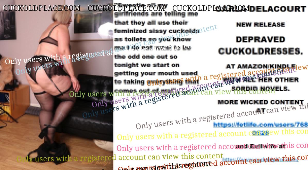 Afternoon all CARLA DELACOURT NEW RELEASE NEW CAREERS FOR CUCKOLDRESSES AND FEMINIZED SISSY CUCKOLDS. AT AMAZON/KINDLE WITH ALL HER OTHER SORDID NOVELS. MORE WICKED CONTENT AT The hyperlink is visible to registered members only!and Evilwife at https://www.cuckoldplace.com/