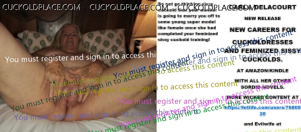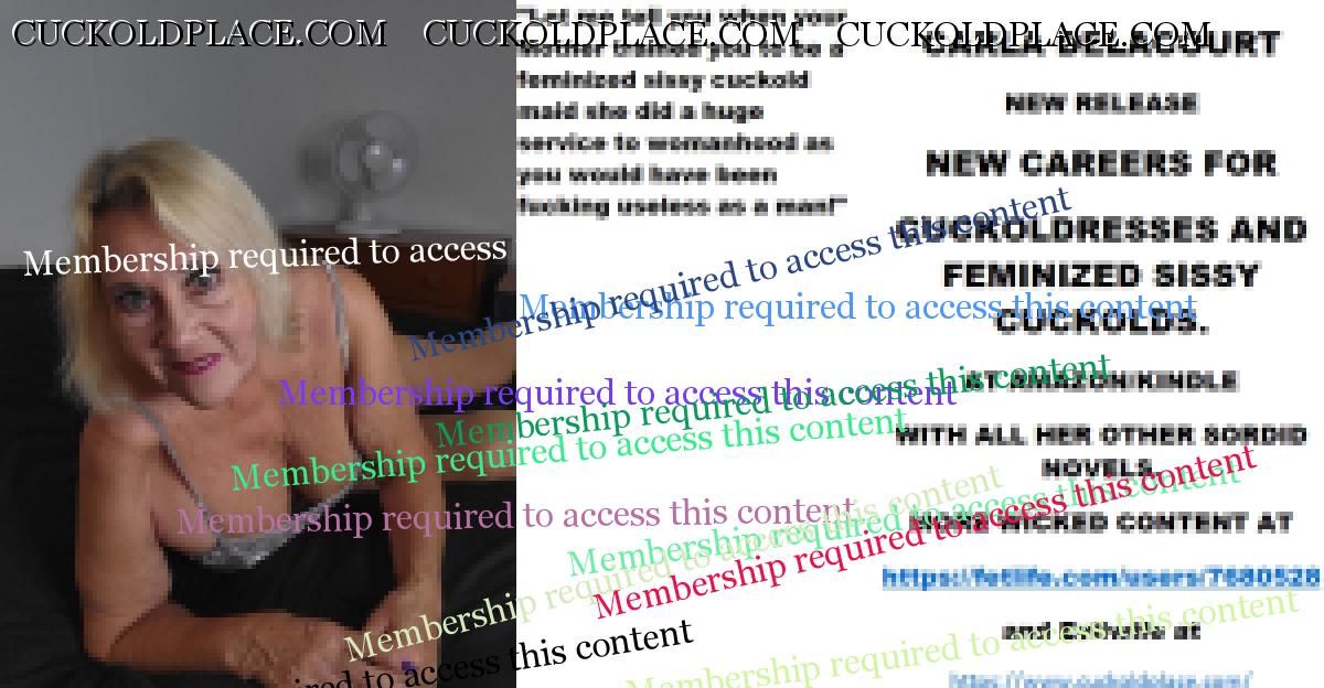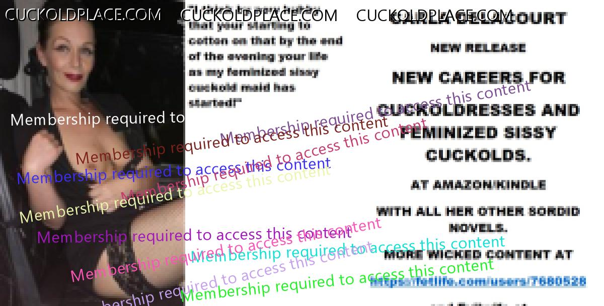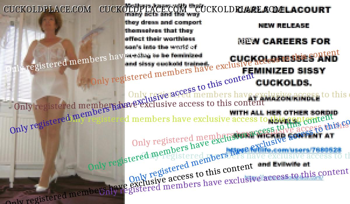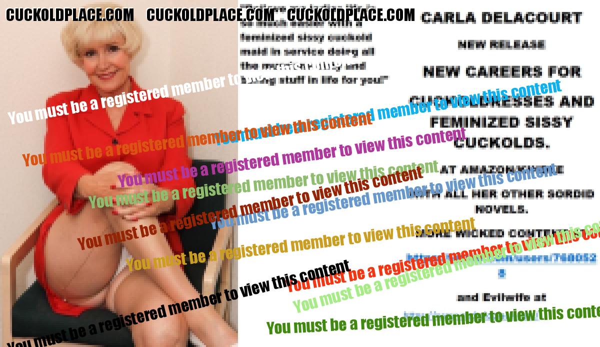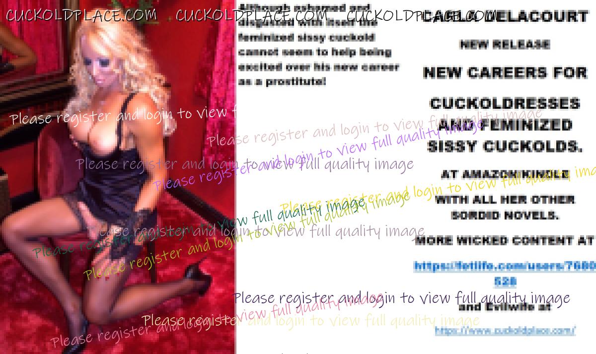 Morning all CARLA DELACOURT NEW RELEASE NEW CAREERS FOR CUCKOLDRESSES AND FEMINIZED SISSY CUCKOLDS. AT AMAZON/KINDLE WITH ALL HER OTHER SORDID NOVELS. MORE WICKED CONTENT AT The hyperlink is visible to registered members only!and Evilwife at https://www.cuckoldplace.com/