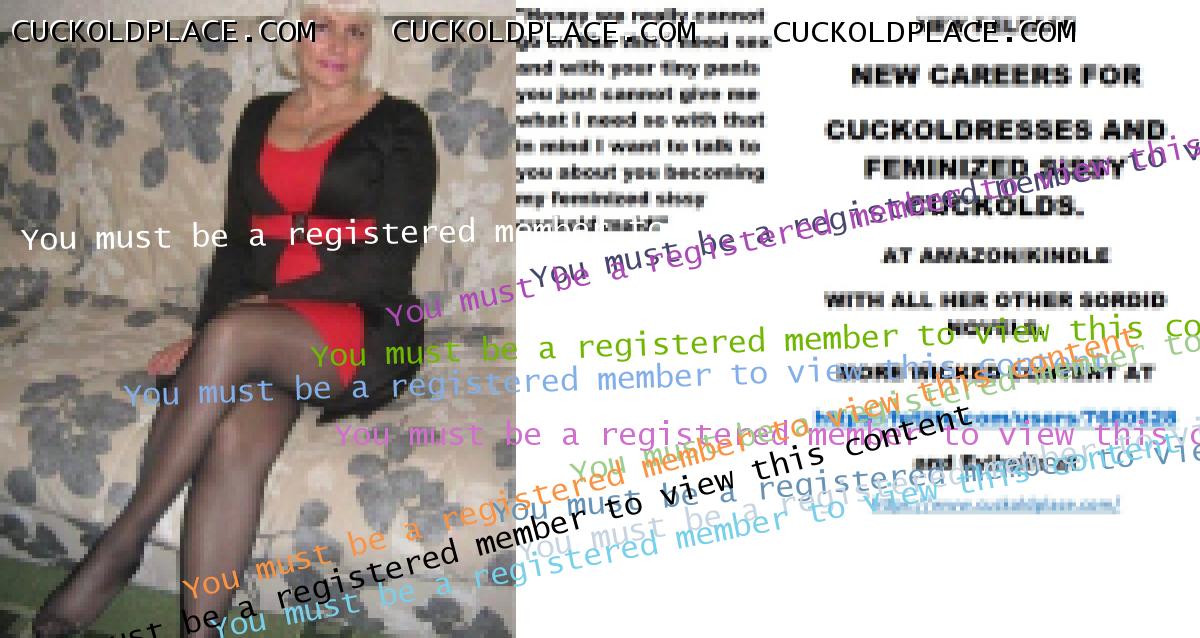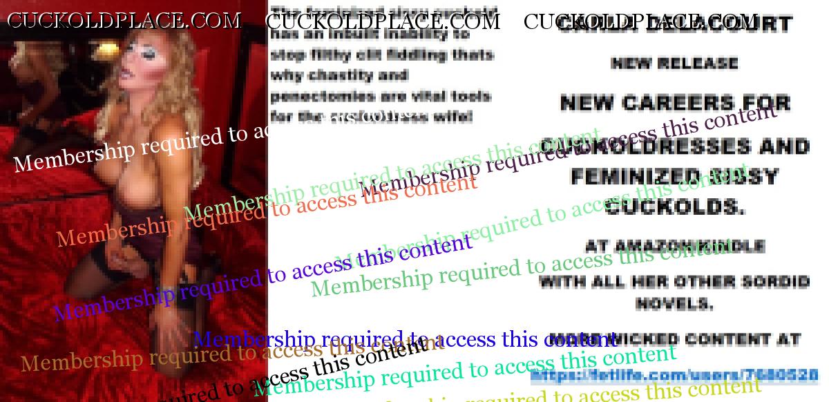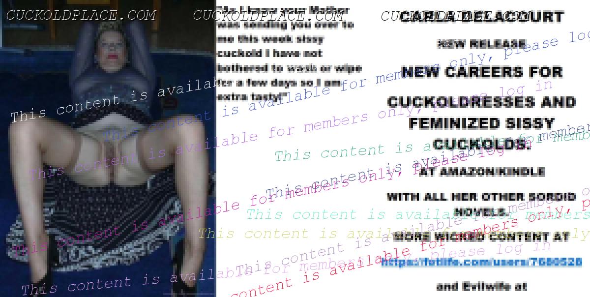 Evening all CARLA DELACOURT NEW RELEASE NEW CAREERS FOR CUCKOLDRESSES AND FEMINIZED SISSY CUCKOLDS. AT AMAZON/KINDLE WITH ALL HER OTHER SORDID NOVELS. MORE WICKED CONTENT AT The hyperlink is visible to registered members only!and Evilwife at https://www.cuckoldplace.com/