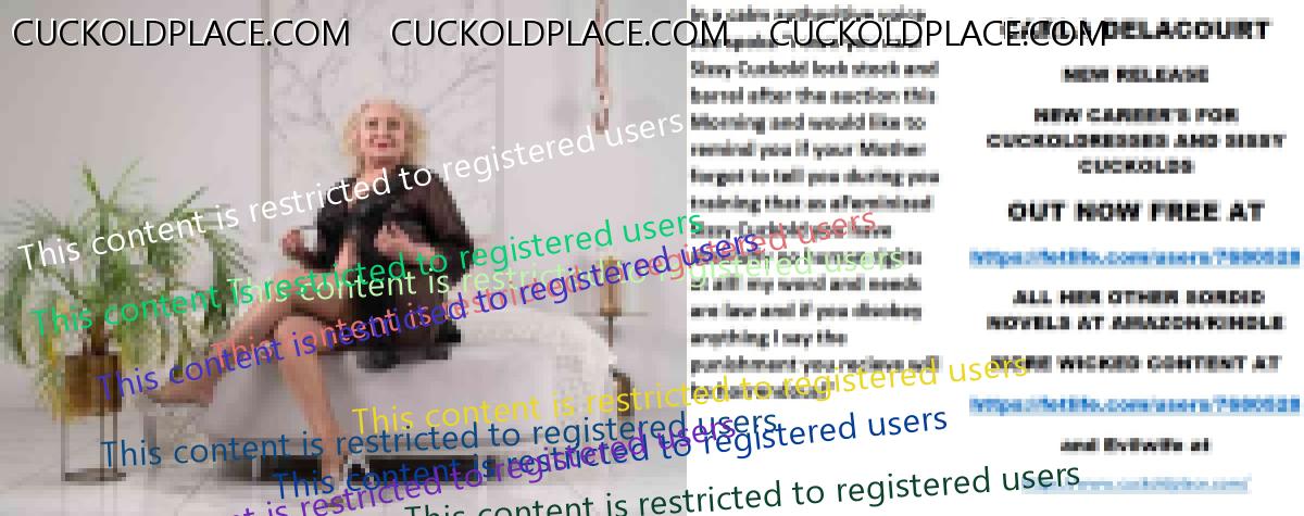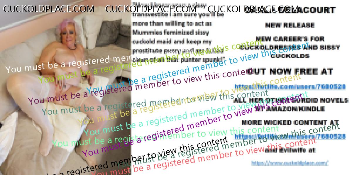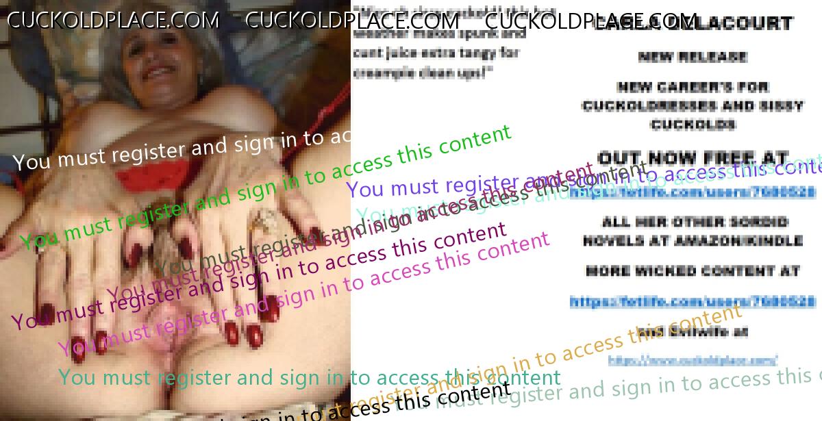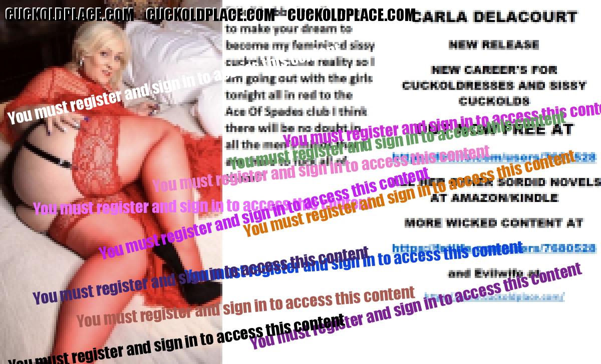 Yet more to go CARLA DELACOURT NEW RELEASE NEW CAREER'S FOR CUCKOLDRESSES AND SISSY CUCKOLDS OUT NOW FREE AT The hyperlink is visible to registered members only! ALL HER OTHER SORDID NOVELS AT AMAZON/KINDLE MORE WICKED CONTENT AT The hyperlink is visible to registered members only!and Evilwife at https://www.cuckoldplace.com/
