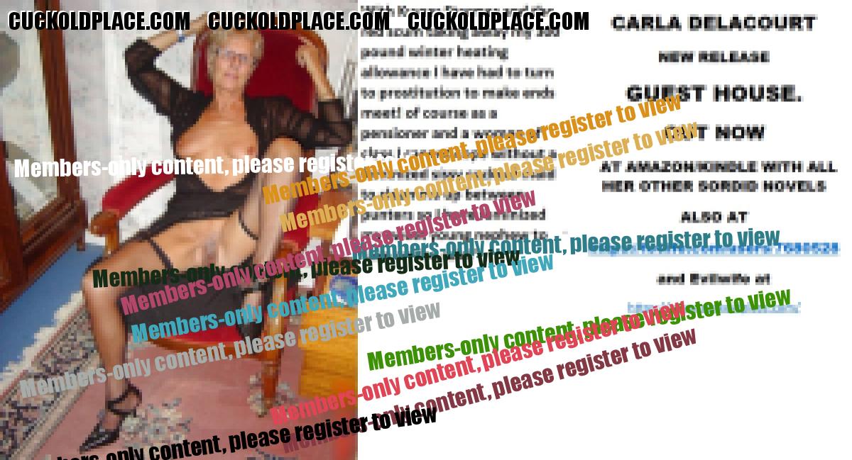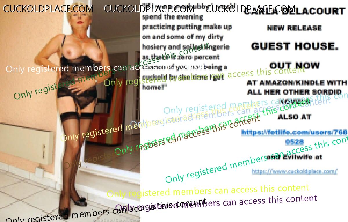 Evening all My new novel out today CARLA DELACOURT NEW RELEASE GUEST HOUSE. OUT NOW  AT AMAZON/KINDLE WITH ALL HER OTHER SORDID NOVELS ALSO AT The hyperlink is visible to registered members only!and Evilwife at https://www.cuckoldplace.com/