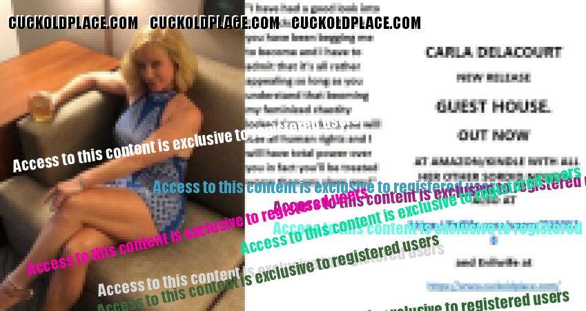 Morning all CARLA DELACOURT NEW RELEASE GUEST HOUSE. OUT NOW AT AMAZON/KINDLE WITH ALL HER OTHER SORDID NOVELS ALSO AT The hyperlink is visible to registered members only!and Evilwife at https://www.cuckoldplace.com/