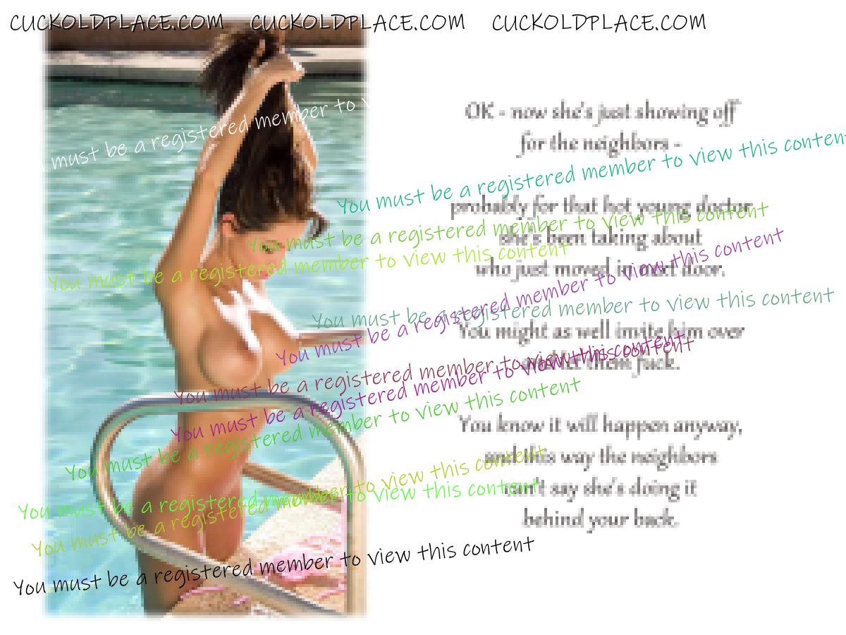 Superb set. Some of these "hurt so good." Don't you love the captions wherein the wife does things on her own initiative that cause both arousal and angst, things that are the exact opposite of what the conventional you wants but thrill your cuckold side by doing exactly what the cuck wants?