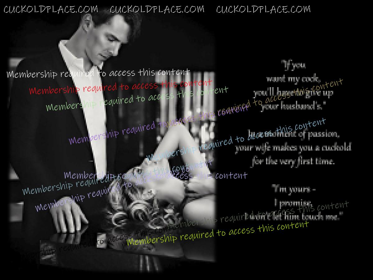 Thanks so much, everyone. So many great replies...I'm truly flattered. arkansan: One Condition I would adore a wife that told me that. I'd want her to tease me about the men who fuck her behind my back. I'd want her to tell me that she's not always doing what she says, that her shopping trip is sometimes a meeting with a lover or that she sometimes her picking up a complete stranger to fuck. The thing I love most about L's teasing is that I never really know how much of what she tells me actually happened. The swings between shy loving wife and siren keep me off balance - did she really bed the guy she met on that business trip, as she claims when she's riding me in bed weeks later? Was he really that big? The next day she'll blush and be "too embarrassed' to answer. Just that knowing little grin that says "the rest is private". She knows my imagination will run with the rest. dinky: I love the caps with the boss. One of my biggest fantasies: Mine too, although I wouldn't want to play it out in real life. Enough stress at work already. Being submissive as a couple is a turn-on for L and I, and we've role-played scenarios with one of her lovers in the past. But being owned as a couple by your boss takes it to another level. It extends the forfeiting of power outside the home, to the workplace, and to a man who actually does have power over your lifestyle by means of your income. Aside from becoming your boss's bitch at work, the situation would most likely be exposed to your coworkers in time as well. In a way, then you and your wife become submissive to them as well, and on and on. Submission and offense as a couple, laced with sex and anxiety - heh, it ramps up the excitement at an exponential rate. Yum. Don