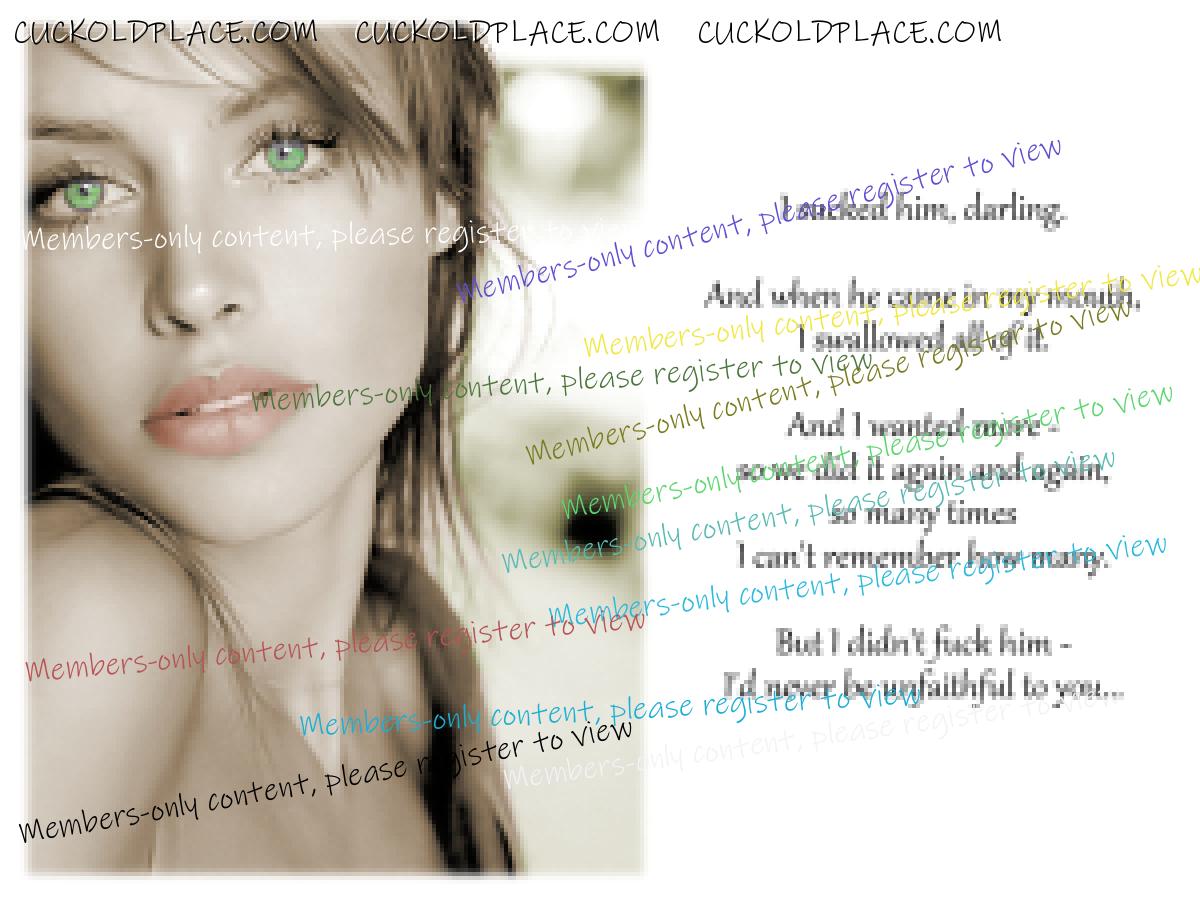 Always Faithful. I love the thought of a hotwife only sucking off other men and not letting them fuck her. The most intimate act - taking another man's cock in her mouth and swallowing his load - and yet not letting him invade her pussy. I love the dichotomy of that. Great cap Don.