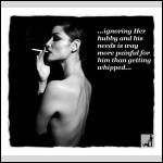 "Hubby I want to go for a ride" is perfecto. Her magnificent weight holding you in place, her reins directing you, the jab of the spurs to encourage obedience and then having to clean them when she dismounts. Excellent.