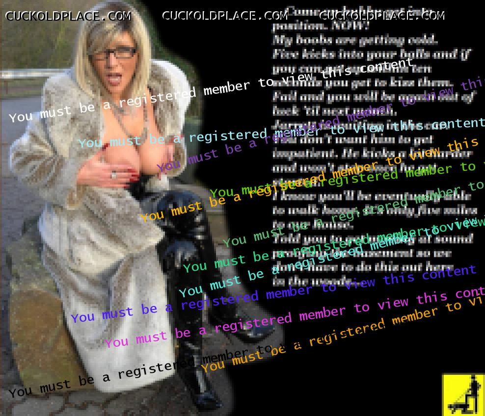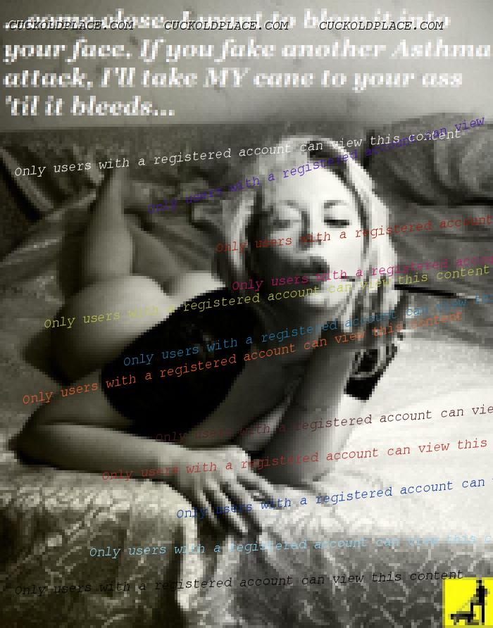 “Just think darling - one FINAL mind-blowing orgasm – one like never before and the “thrill” of knowing that it will never happen again. I promise My love it will be truly spectacular…” I’m sure that I’ll have to punish you severely for several days after I’ve let you spend the night with ME but I’m willing to accept that, knowing that I’ll never have to put up with your attitude and “rebellion” again after you’ve had your orgasm.” “I want you to know that should you decide that you don’t want to do this, I will divorce you because I will know that you don’t love ME enough to do this for ME. It will leave you without much money since you signed away all your assets to ME a couple of years back and you will have to leave with just your clothes and that old VW beetle that you’ve kept for some silly sentimental reamister. There would be a huge scandal because all those pictures of you sucking My lover’s cocks would become somehow public.”