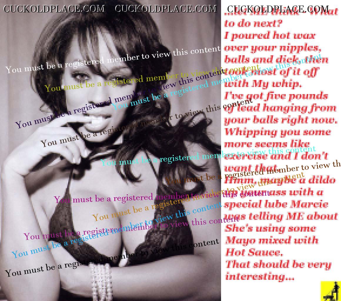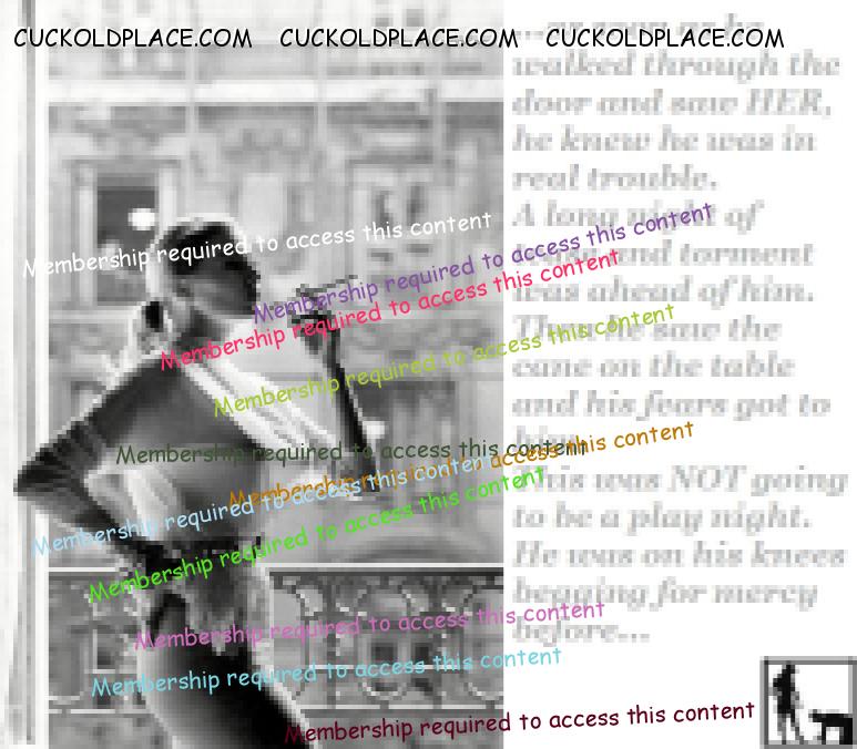 A couple of weeks later Tony and his friend will come over for a night of hot sex while you serve as our maid and slave. Tony tells Me that his friend’s cock is just a large as his and he is really, really black. You know how I always wanted a black lover but just could not find the right guy. Maybe this will be it. Anyway after a night of fucking and sucking they’ll make the lock permanent. Now of course since Tony always enjoys watching us when I punish you I will look for ANY excuse to punish you while you are serving US. But honey, it will be just to please MY lovers, nothing to do with our relationship. I will always be your loving Wife and Goddess. You know that sometimes I get this little mean streak and get a bit rough with you but you’ve always accepted that as part of our special bond.”