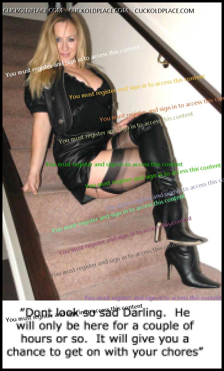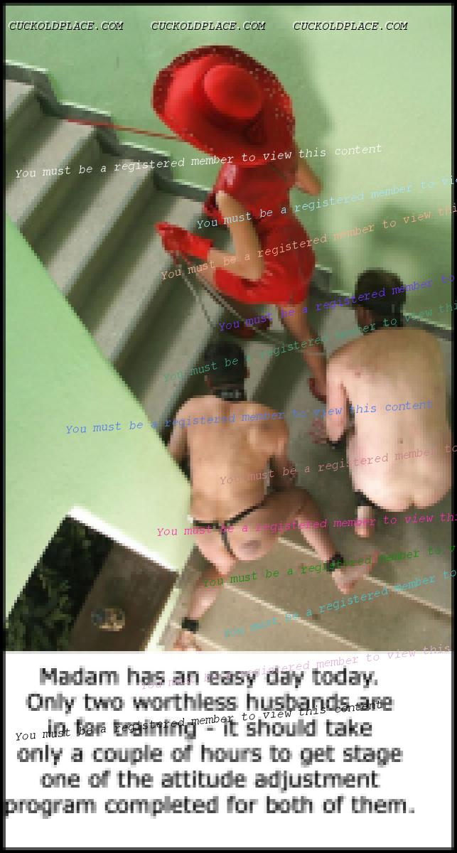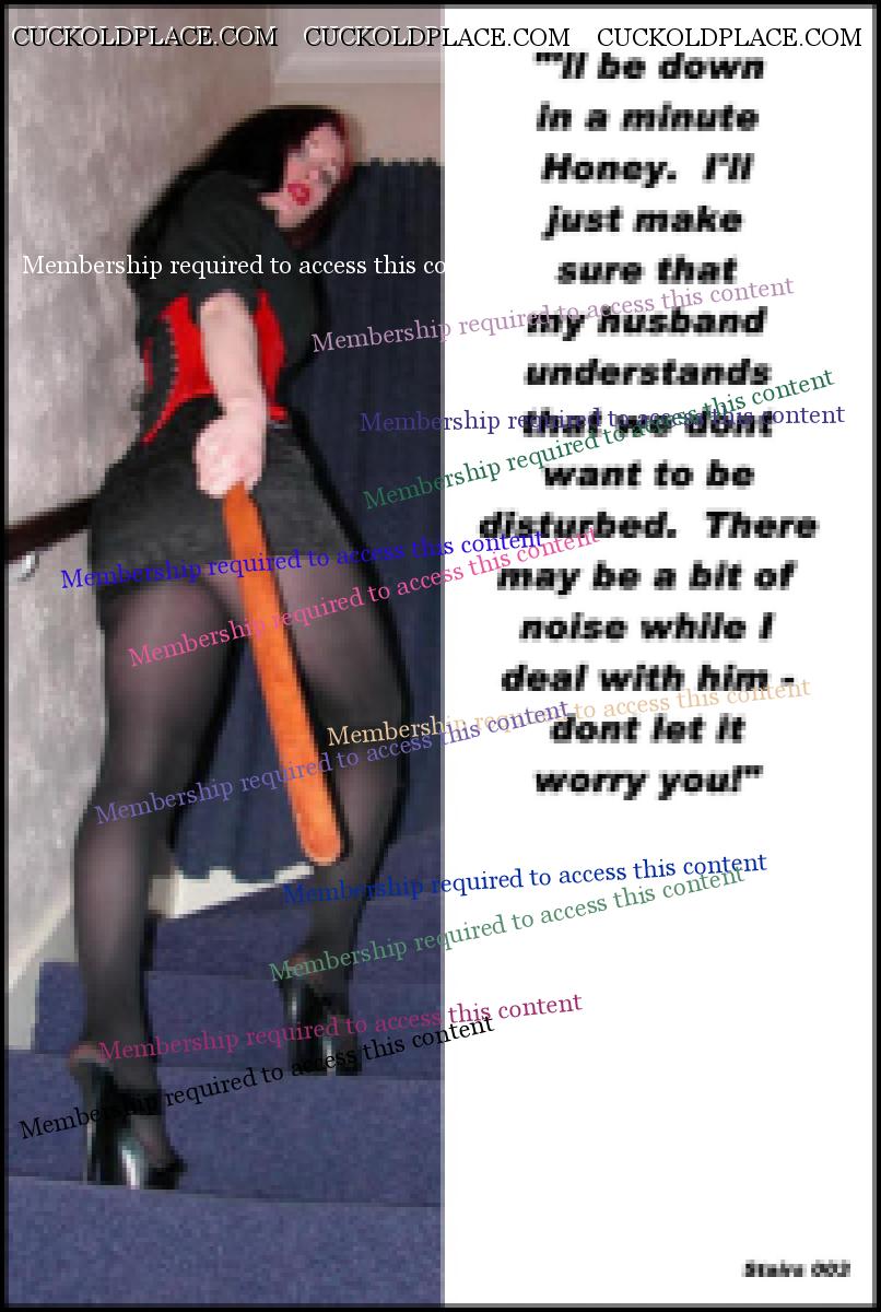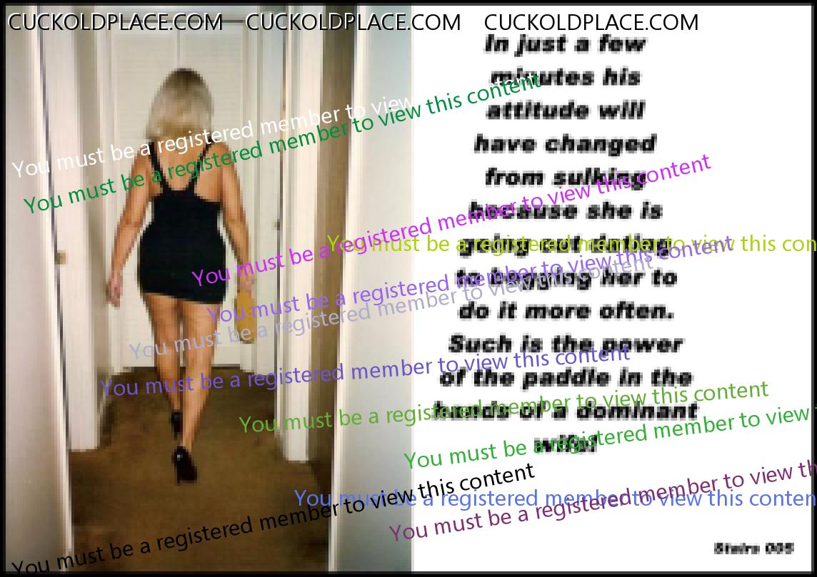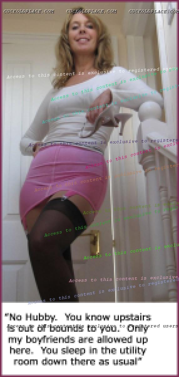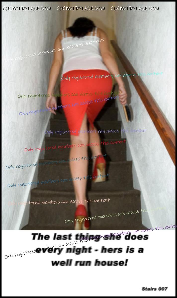 QUICKSILVER: Yes a very narrow focus thread It is... but stairs provide a rich opportunity for cuck play. Visions of the wife going up the stairs, leaving the cuck husband behind as she heads toward the pleasures that await her... or coming back down after being fucked and used by another Alpha male. cuckold - Pronunciation - kuk-uhld - noun 1) The husband of an unfaithful wife. 2) A husband whose wife has sex with others. NOTE - It does NOT say: Sexually confused, submissive, humiliated, sissified, crossdresser, cocksucker, or piss drinker