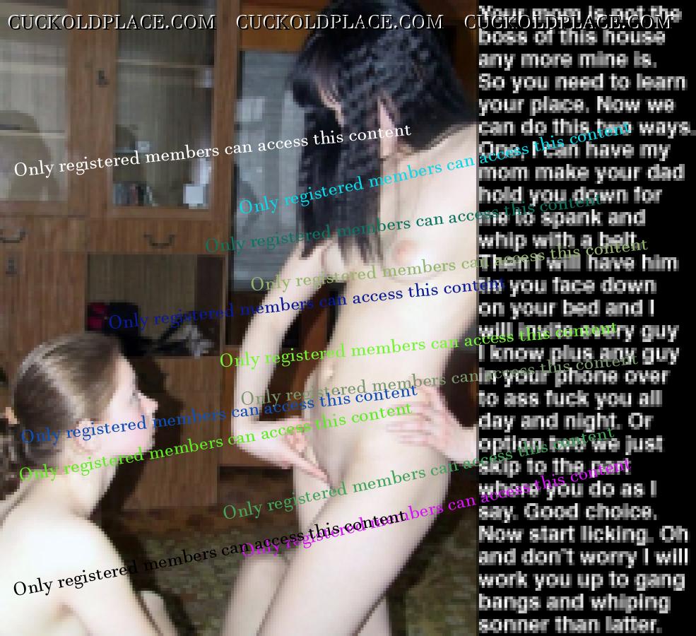CuckoldPlace.com / Cuckold Captions / Female on male strap on and modern "family" (step/inlaw) captions |