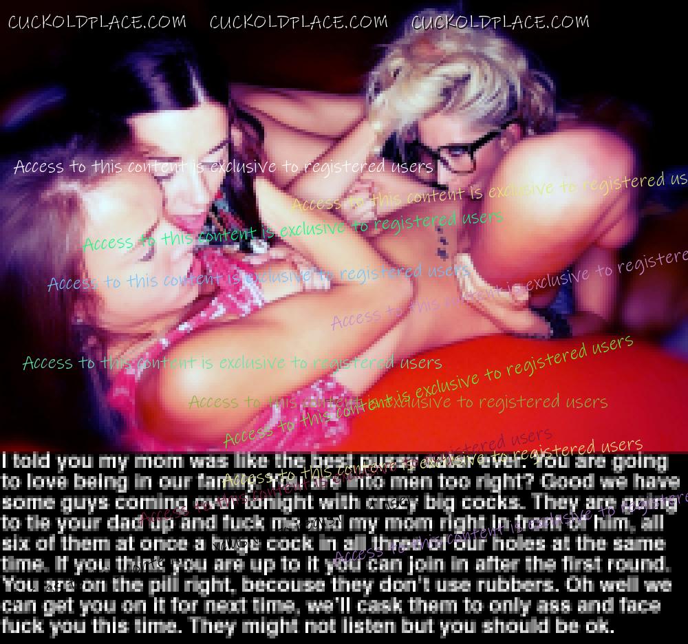 CuckoldPlace.com / Cuckold Captions / Female on male strap on and modern "family" (step/inlaw) captions |