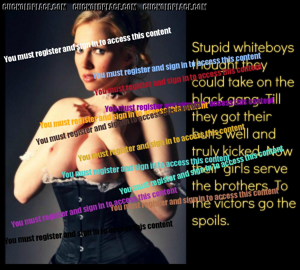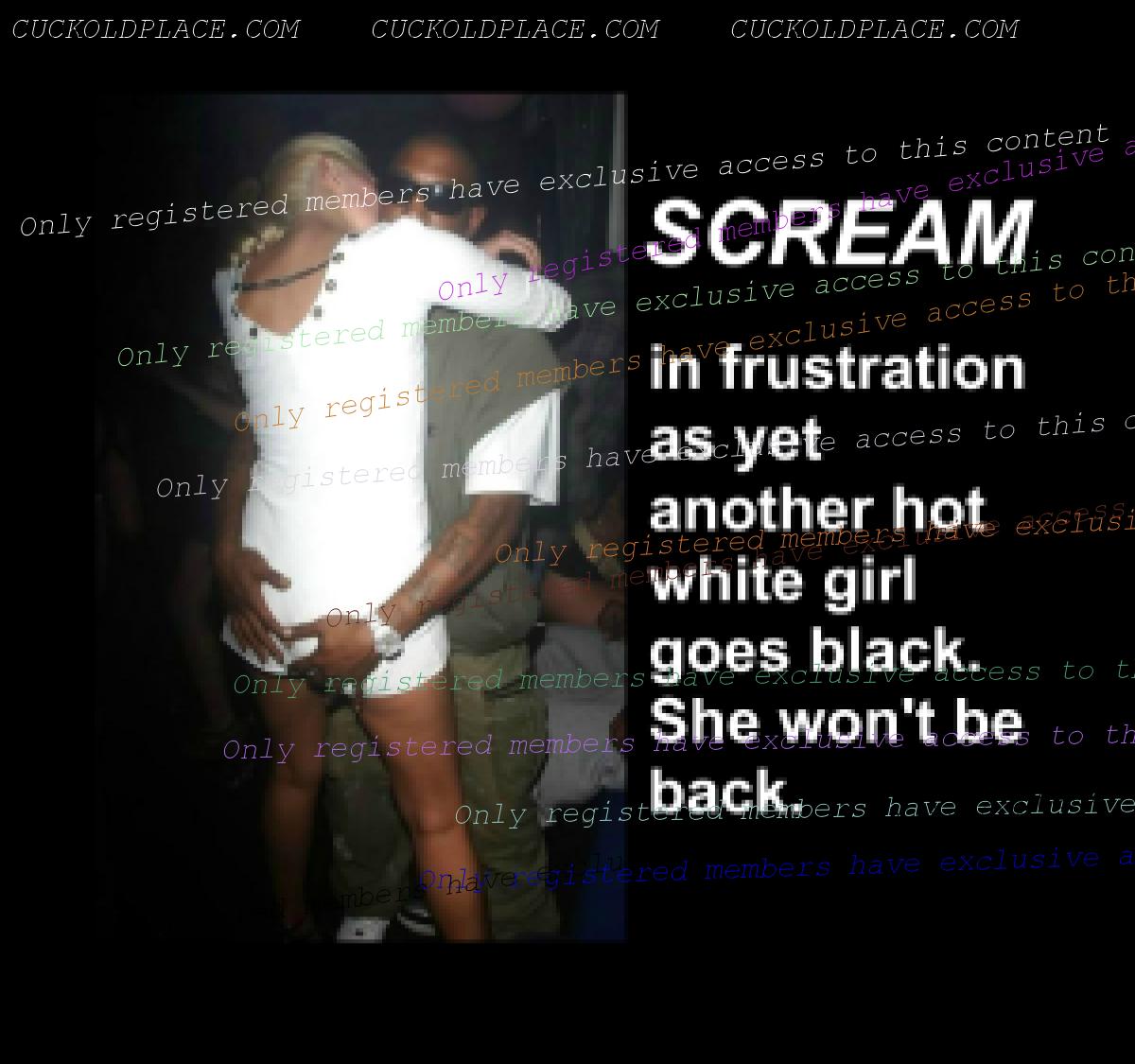 Those of us with "unaware cuckolds"....husbands who don't know we are cheating on them with Black Men, often teenage boys, love the captions in that theme. As one caption put it so perfectly, "It was the fuck of her life......she'll be back. They always come back." How true. I have tried to quit more times than I can count, but I've never been able to stay away from Black Men for more than 4 weeks. And when I do hold out, when I come back my sheer desperation and horniness invests lead me to do one more thing I've never done before, break yet another boundary in my depravity and presentation to Black Dick. Things I never would have believed I would do before I started down this road, become things I wind up begging total strangers to do to me or let me do for Them.