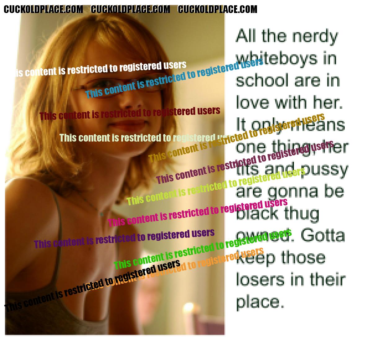 #359, 1.... Really hits the nail on the head. I let Black Men know I'm married.......I always wear my wedding ring and engagement ring, and make sure I jack Their cocks when giving Them blowjobs, with my left hand...because I know They will fuck me harder and nastier knowing They are using a well-to-do white man's wife. They don't need to know that he is way older than I am and has been completely impotent for almost 15 years....it gets me fucked and fucked hard, so that makes it right.