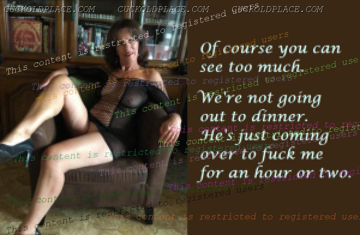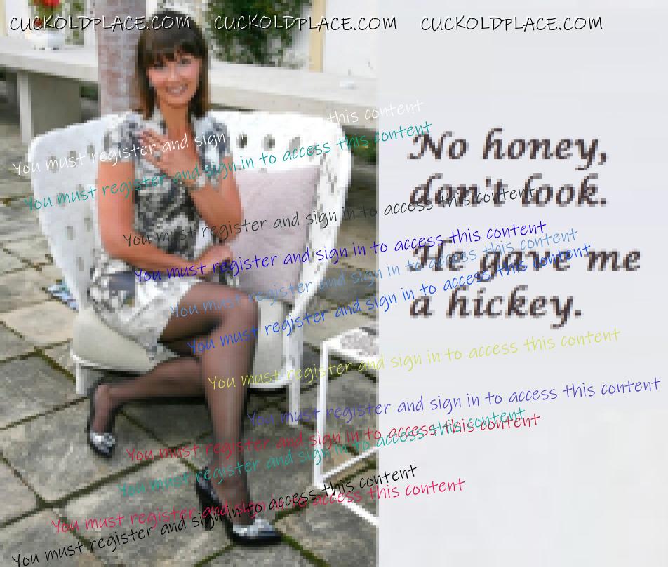 kennyboy82: The first time you ever do this with another mans wife is truly memorable, stays with you forever, especially if it's her first time cuckolding her hubby. As far as I know, I've never done that.  I'm hopeful that my GF may enjoy herself on a cruise that she's going on by herself. It's a week long cruise, and she has arranged for a female roommate. I'm sure we'll be talking about things (both the cruise and her hall pass) between now and early next year when it takes place. kennyboy82: Incidentally, she's got a fine ass, big and soft and ripe for fucking! Yes, she certainly does! I'd love to watch that happen. Peter C: My wife Debbie went away with an ex-work colleague of mine for a week's holiday, a caravan in Devon I believe, whilst I stayed at home with the chi1dren. She told me they fucked every day, usually 2 or 3 times a day. Oh my gosh, that must have been very exciting for you! Knowing she's away with him making love. And then for her to come home and tell you about it. Mmm! eltipo4u: thank you again  You're very welcome! Enjoy today's caps, guys. xoxoxo Christine  Thanks for the Pass