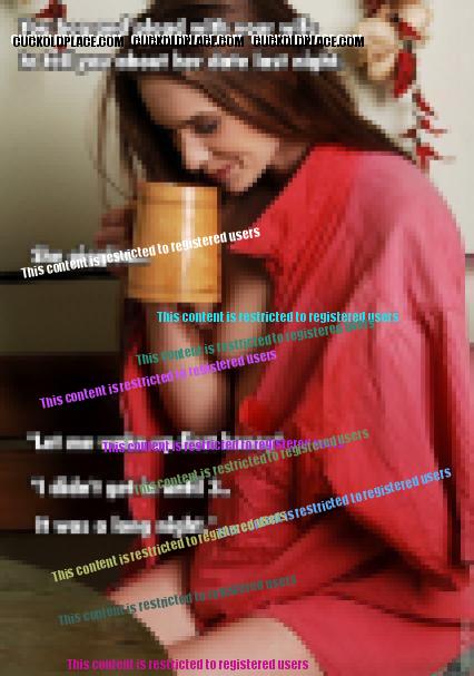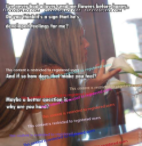 Post 263 18 Jan 18:48 I've experienced variations on just that theme several times. She asked "These are from @?$&, do you like that?" Ooo nice flowers, who are they from? She replies "Read the card." Smiling mischievously of course. Red roses? Is there something I should know about, I thought you were more just friends? When you arrive with what you consider a lovely vase of mixed flora to find two dozen red roses on the dining room table, you tend to feel a bit outshone and your sense of security can take a hit. Nothing overtly sexual about any of this but seeing her accept, welcome, and enjoy his overtures, heady stuff. The playful looks and comments are fun but the non-playful part is especially impactful. When she's happy over something he's done it's hard not to feel a bit threatened/jealous. So yes I like when she receives gifts, and I also enjoy you capturing that dynamic in your caption. Post 264 18 Jan 21:31 Seeing her sipping, dressed as she is, needing a moment. That's so real. Her giggling is strangely comforting. It's when she puts off talking and is distant and serious that fear creeps in. Okay in my case it was terror.  Good caps. Be well.