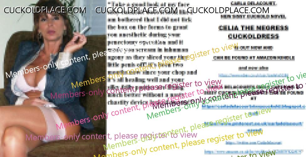 Morning all, more wicked cuckoldress wives! CARLA DELACOURT. NEW SISSY CUCKOLD NOVEL CELIA THE NEGRESS CUCKOLDRESS IS OUT NOW AND CAN BE FOUND AT AMAZON/KINDLE and now also The hyperlink is visible to registered members only!CARLA DELACOURTS DAILY CAPTIONS & SISSY CUCKOLD THOUGHTS CAN BE FOUND AT The hyperlink is visible to registered members only!The hyperlink is visible to registered members only!The hyperlink is visible to registered members only!The hyperlink is visible to registered members only!