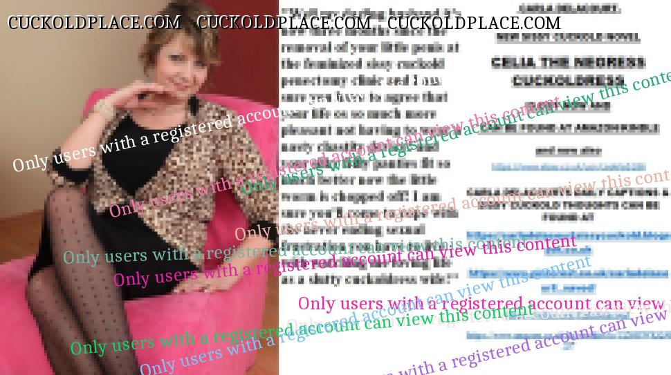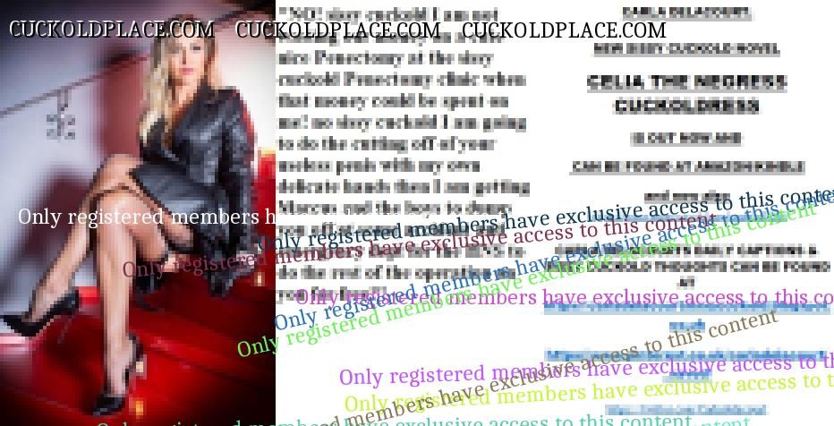 The cruellest cut. CARLA DELACOURT. NEW SISSY CUCKOLD NOVEL CELIA THE NEGRESS CUCKOLDRESS IS OUT NOW AND CAN BE FOUND AT AMAZON/KINDLE and now also The hyperlink is visible to registered members only!CARLA DELACOURTS DAILY CAPTIONS & SISSY CUCKOLD THOUGHTS CAN BE FOUND AT The hyperlink is visible to registered members only!The hyperlink is visible to registered members only!The hyperlink is visible to registered members only!The hyperlink is visible to registered members only!