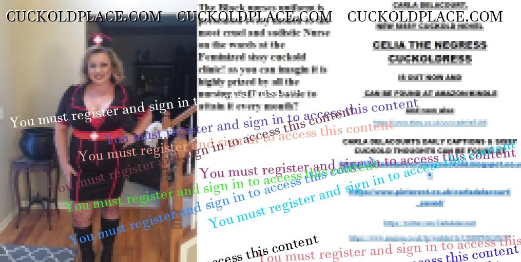 afternoon all CARLA DELACOURT. NEW SISSY CUCKOLD NOVEL CELIA THE NEGRESS CUCKOLDRESS IS OUT NOW AND CAN BE FOUND AT AMAZON/KINDLE and now also The hyperlink is visible to registered members only!CARLA DELACOURTS DAILY CAPTIONS & SISSY CUCKOLD THOUGHTS CAN BE FOUND AT The hyperlink is visible to registered members only!The hyperlink is visible to registered members only!The hyperlink is visible to registered members only!The hyperlink is visible to registered members only!