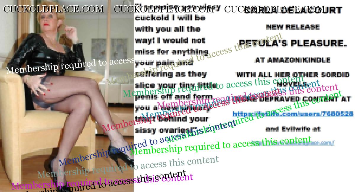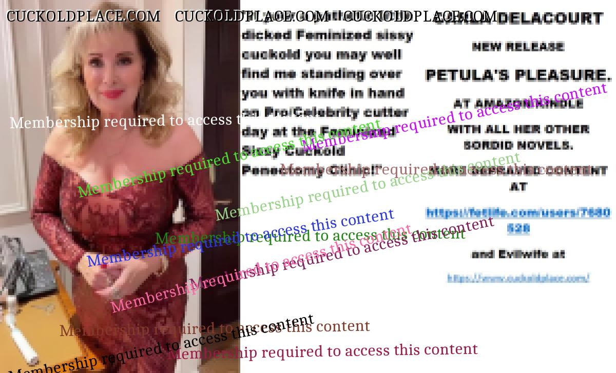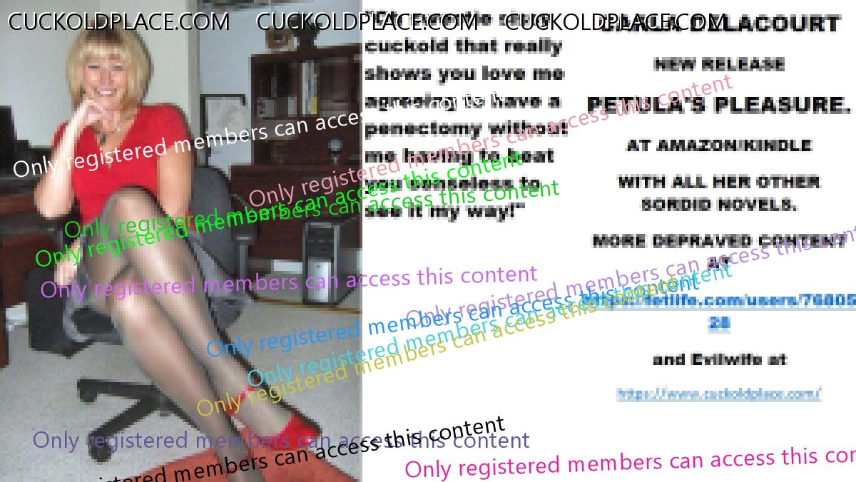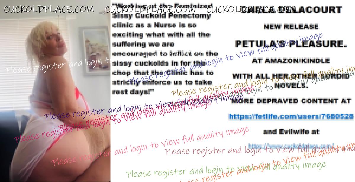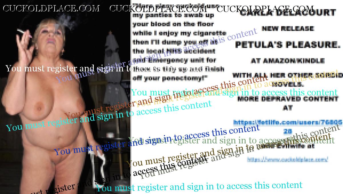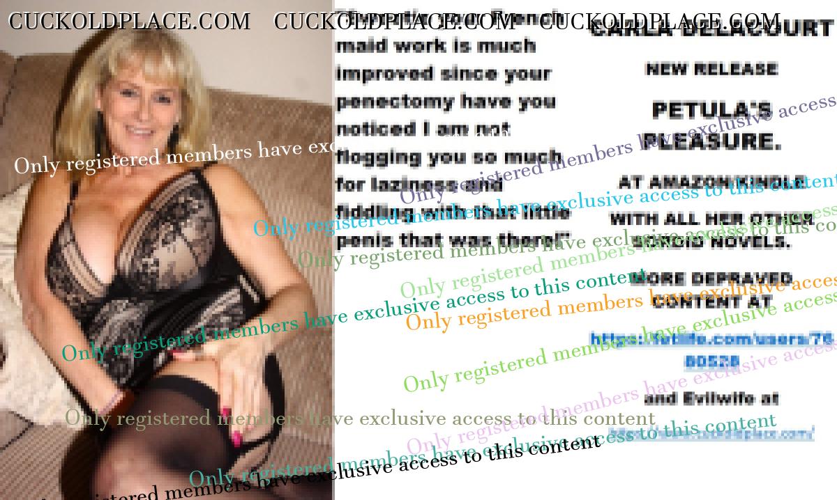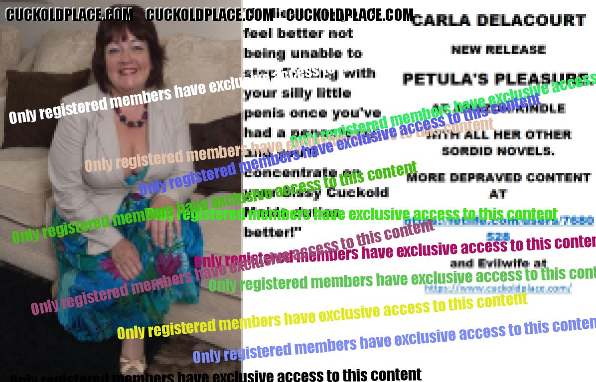 Wednesday's cut CARLA DELACOURT NEW RELEASE PETULA'S PLEASURE. AT AMAZON/KINDLE WITH ALL HER OTHER SORDID NOVELS. MORE DEPRAVED CONTENT AT The hyperlink is visible to registered members only!and Evilwife at https://www.cuckoldplace.com/