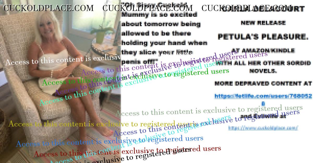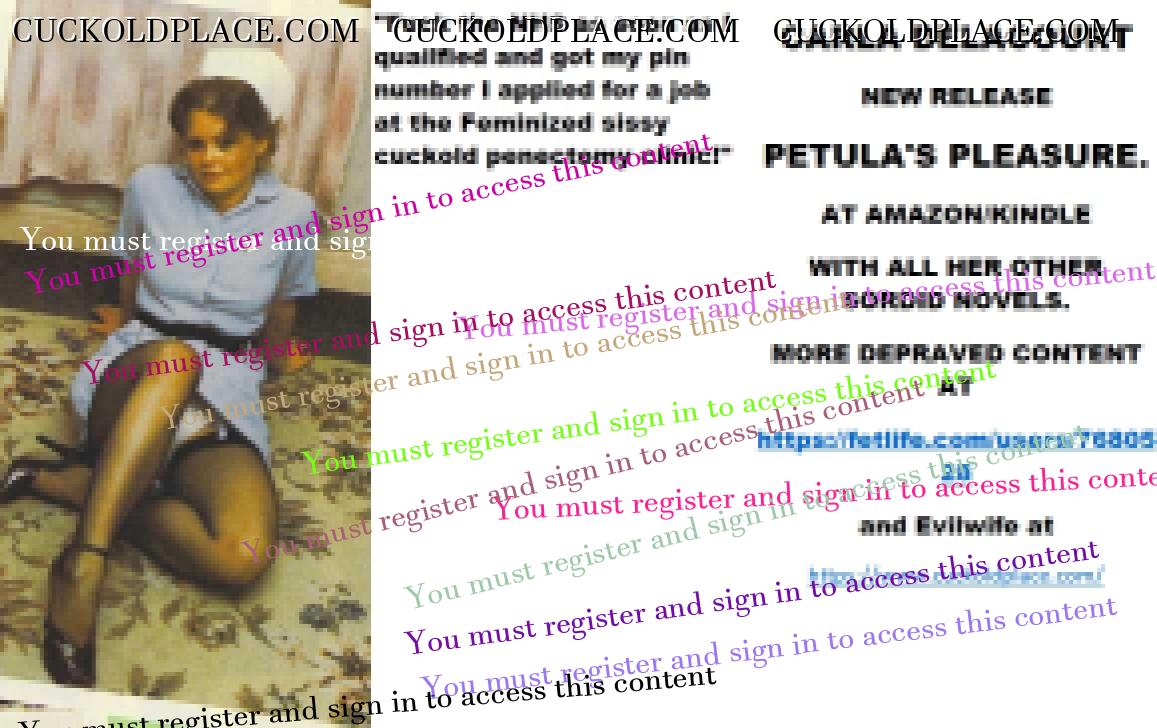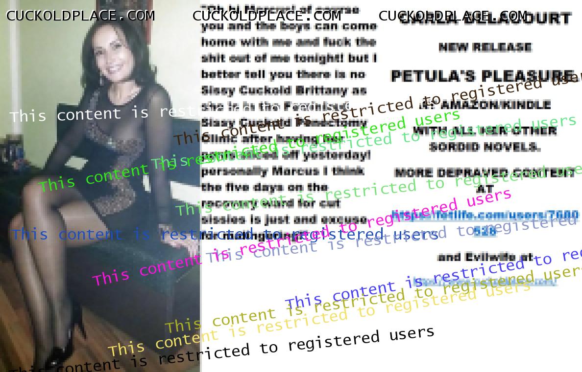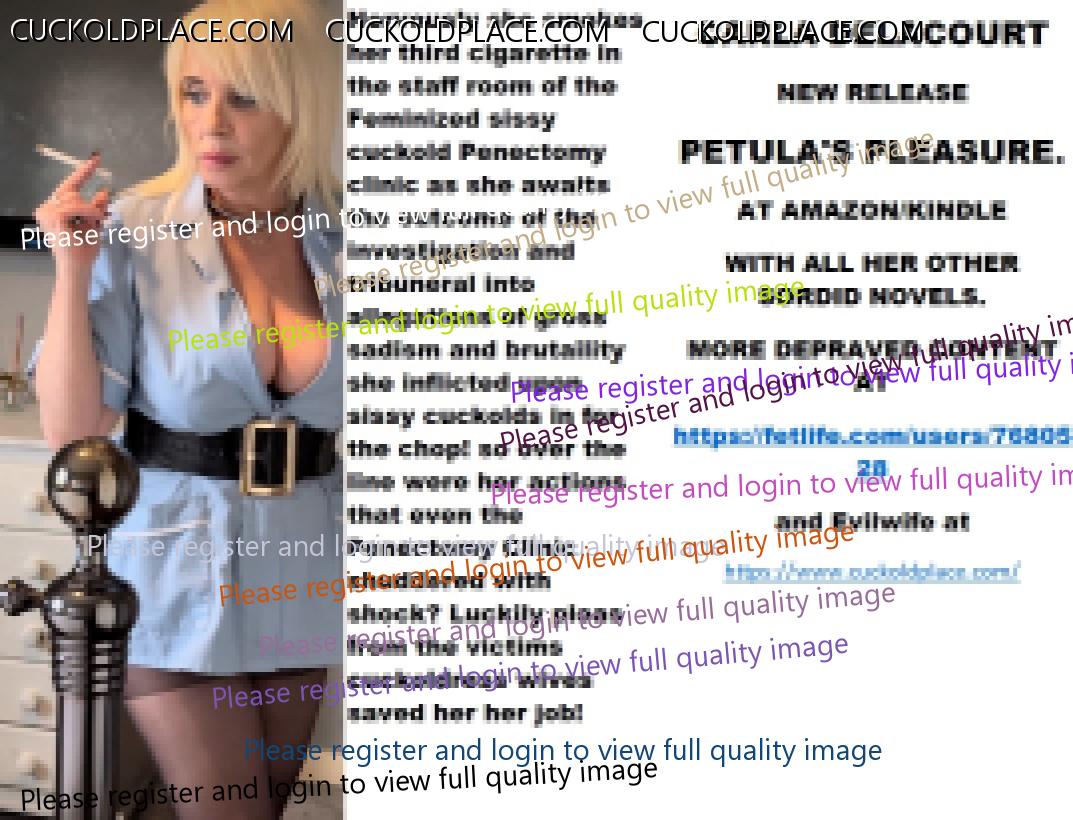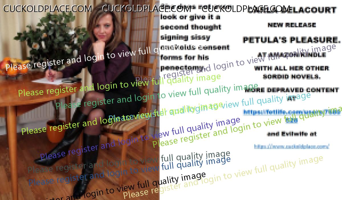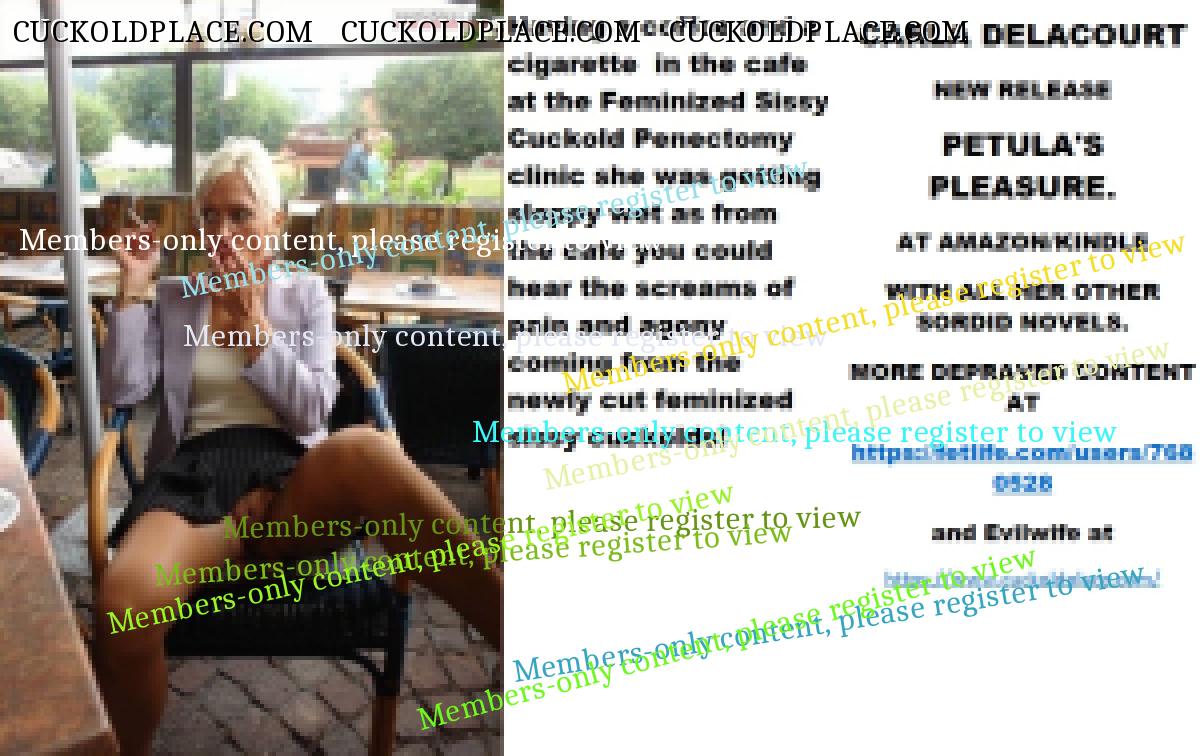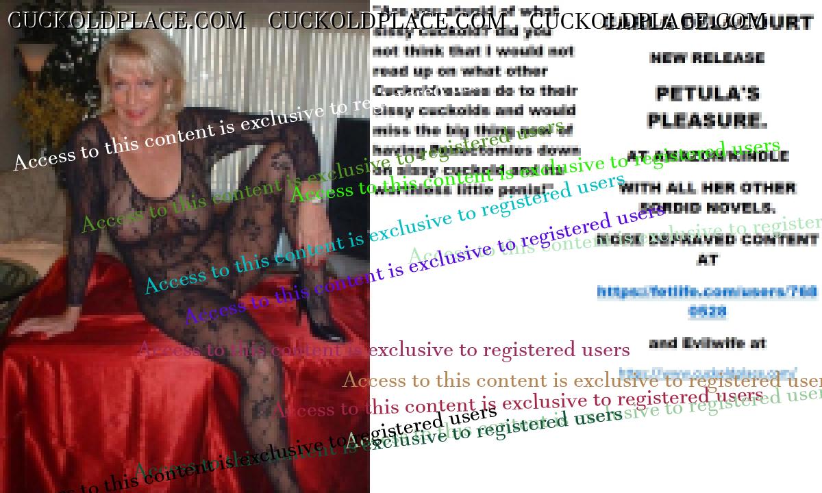 Wednesday's cut CARLA DELACOURT NEW RELEASE PETULA'S PLEASURE. AT AMAZON/KINDLE WITH ALL HER OTHER SORDID NOVELS. MORE DEPRAVED CONTENT AT The hyperlink is visible to registered members only!and Evilwife at https://www.cuckoldplace.com/