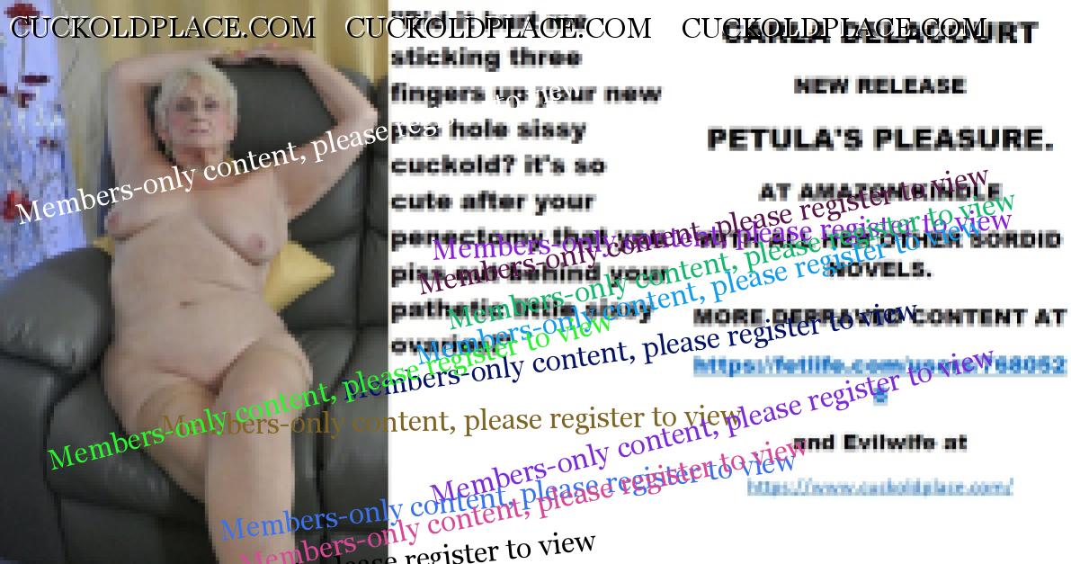 Tuesday's cut CARLA DELACOURT NEW RELEASE PETULA'S PLEASURE. AT AMAZON/KINDLE WITH ALL HER OTHER SORDID NOVELS. MORE DEPRAVED CONTENT AT The hyperlink is visible to registered members only!and Evilwife at https://www.cuckoldplace.com/
