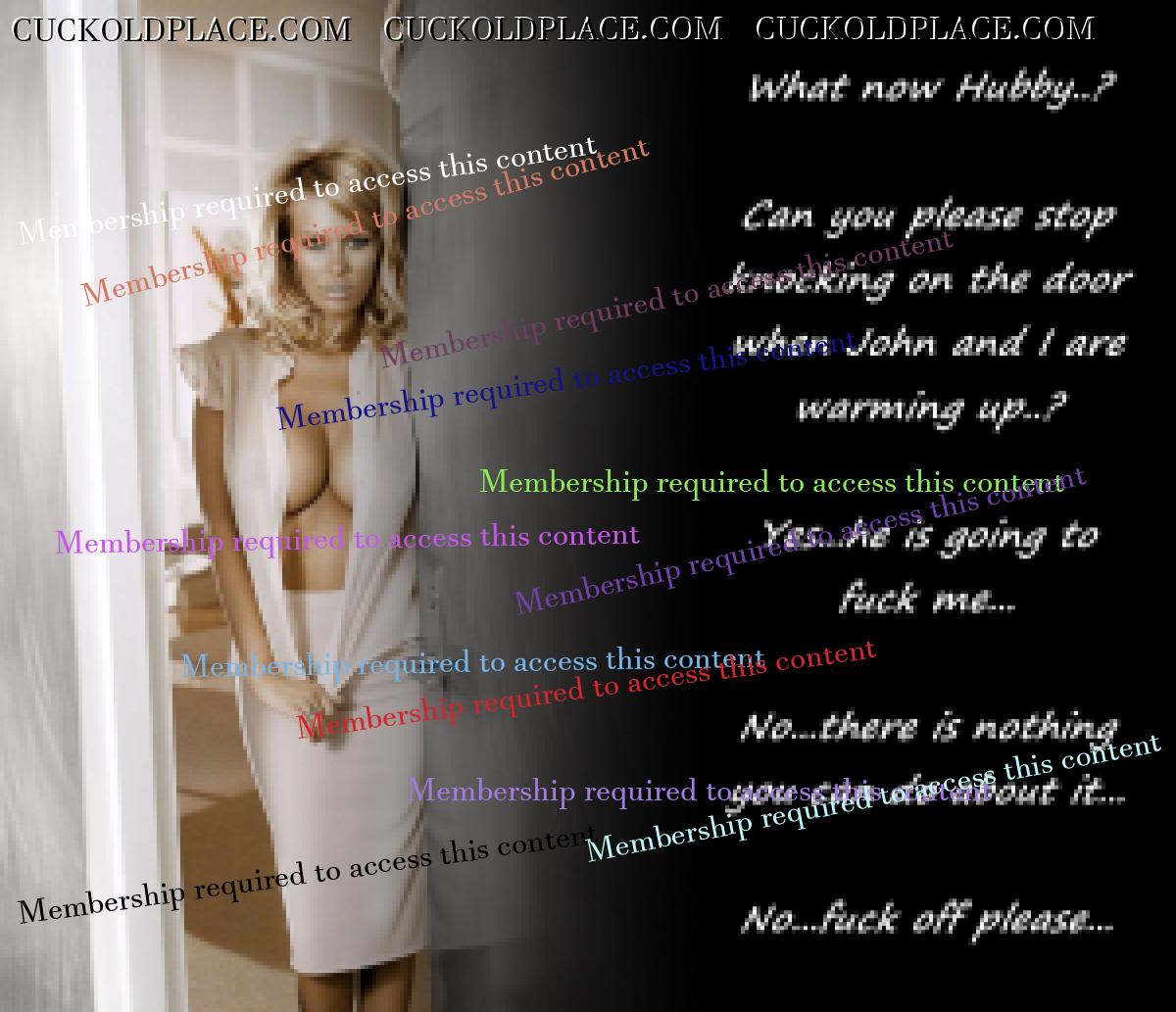 "Do you remember before I really moved in to your flat...I always came to you early in the mornings on Saturdays...you gave me a key so that you didn't had to get up to let me in...well...most of those mornings...I came directly from him...I remember you commented nice how wet I was...how happy you would be to have a wife that would wake you up every weekend with a wet pussy like that...you said something like 'it seems like weekends make you horney'...well...actually, I was dead horney...but the wetness was not only me...it was him too..."