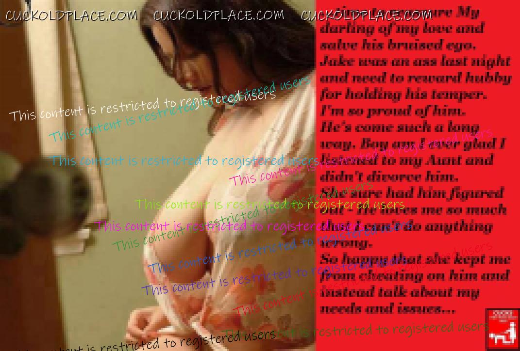 I love this thread. It's interesting and creative. Too often cuckold stories and captions focus on our darker moods, the times when our masochism is running wild. While all of that is fun it's also exciting to spend some time enjoying the pleasure that comes with a real life cuckold relationship.