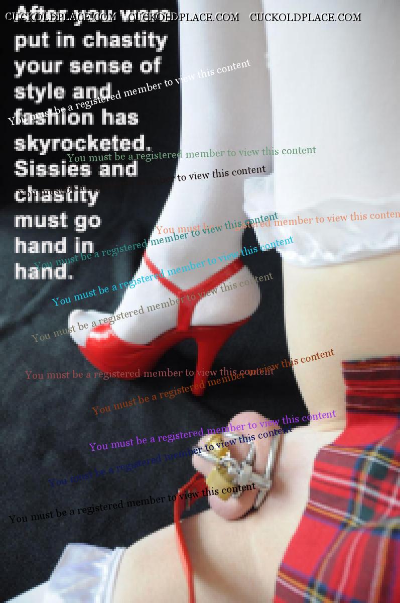 We are so lucky to have so many major talents like Lilmikey here. Yes, there have always been great artists on this site: Timmy27, Don Jetman, Wimphub, Zinco3, Pirate in the Mountains, Jane Fressia, Christine have been posting top notch art for years. It's tempting to think nobody else can reach such heights. Then a great punk rocker like Evilwife comes along, some young upstarts like Prvtryan and Brettrob, and the game gets upped. The current roster of the Hall of Fame is incredibly strong and you, Lilmikey are one of its strongest, most talented entries ever. I love your work in Timmy's open thread and look forward to more of your work here.You are right up there with the legendary sissy/chastity artists like Jacqueline, Chattanooga69, Pirate in the Mountains, Evilwife and, or course, the amazing Wimphub - and on your way to carving your own niche. BRAVO! ALL CAPS POSTED BY ME BELONG TO OTHERS. They belong to Cuckold Place. Or they belong to Others. Or they belong to YOU. Take them if u like them!