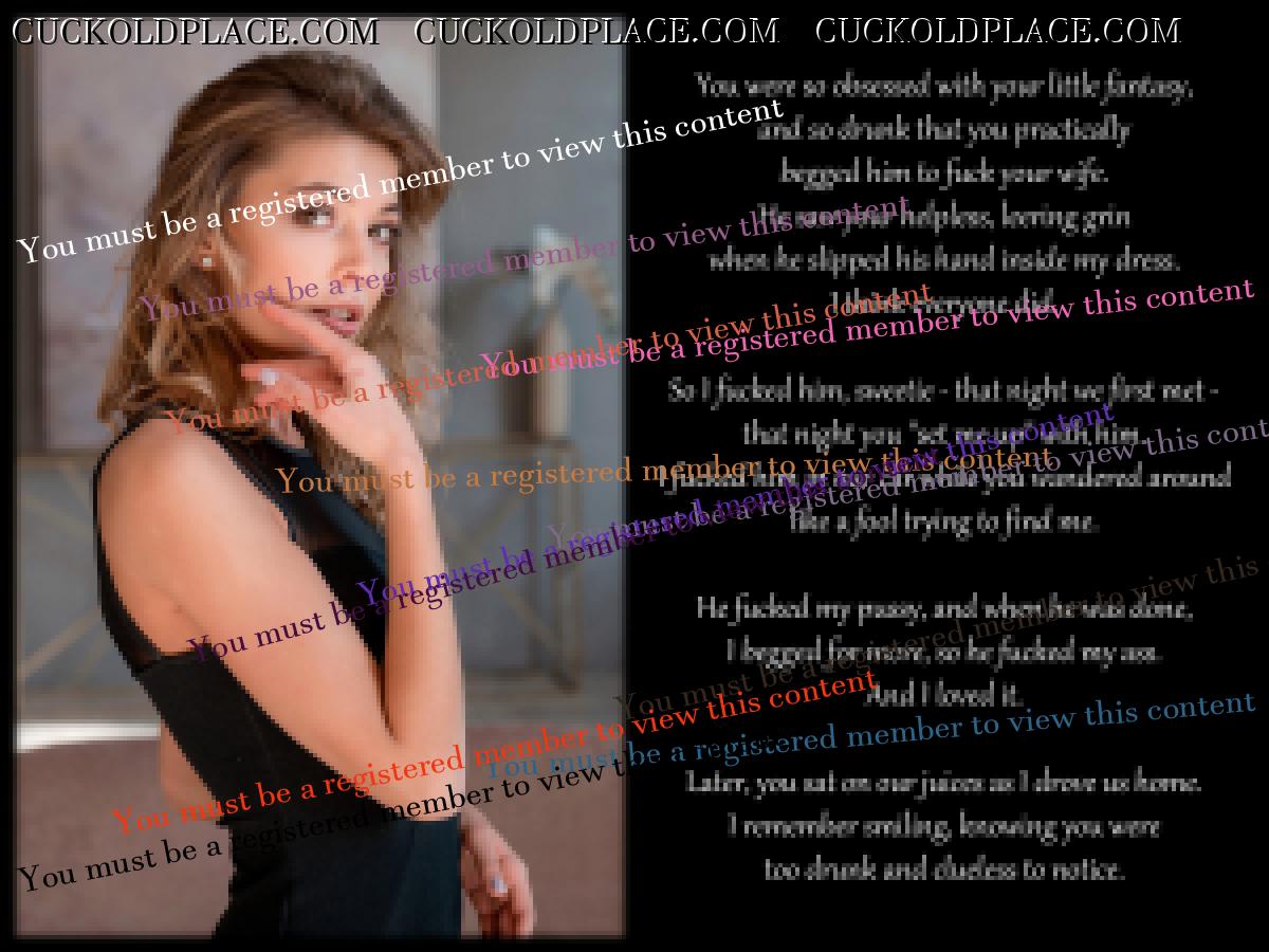 Don Jetman: I'd be very surprised if many women didn't see that potential in a future husband. At least maybe assured "forgiveness" if she happens to stray. I have no doubt that many women have "cuckie radar" and store the info away for a day when she can't say no to another man who makes her wet and seduces her. It lessens the risk in a way, justifying giving in to temptation by imagining the price she pays will be manageable, if her husband finds out. As a marriage ages, there may even be hints that he'd accept or even like it... I think you might have something there. I've often thought that women give off some kind of signal detectable by alpha males that they are up for seduction, regardless of that wedding ring on her finger. I think that was certainly true of my wife Debbie. Your "cuckie radar" may have come into play with Debbie too. We'd spent a good 2 years talking about the possibility of her being allowed to get some cock elsewhere from time to time, including some role-play in bed with a realistic dildo as "the other man". I expected her first encounter to be with Dave, a delivery driver where she worked, but he was beaten to Debbie's pussy by Chris, a young customer who'd been hitting on her. I only found out a couple of years ago from Mark, an ex-work colleague of mine during an online chat that he and my wife had had sex about 2 months before Chris did. Debbie and Mark had become friendly some 5/6 years before, too friendly in my opinion and we'd rowed several times about it. I can't help but think now that that secret coupling with Mark was her way of finally trying his cock. safe in the knowledge that I'd accept it if I did happen to find out. Even he thinks he was a kind of "trophy fuck", merely used so she could say she'd had him at last, as it never happened again. Me and him never spoke to each other after me and Debbie had rowed about him, blanking him at events we were both at, but now he knows I was actually okay with her getting laid elsewhere, he says it's a shame we hadn't sorted out our differences as he'd have loved to have openly fucked Debbie for me on a regular basis. Peter C