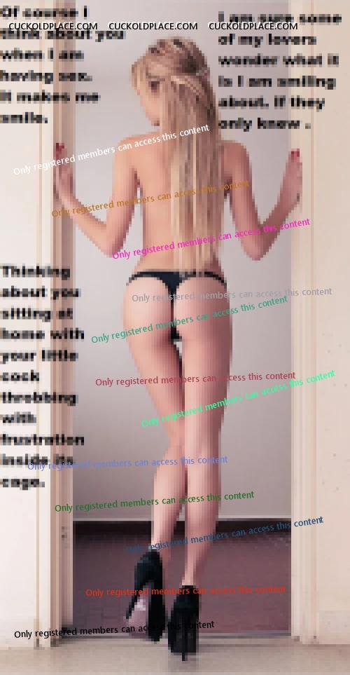 This theme. Some hotwives enjoy teasing and tormenting their cuck hubbies. Tying them to the bed in the spare room while they enjoy their lovers in the main bedroom. Imaagine what those hotwives would say to their poor frustrated cuck hubbies. stevensmiles