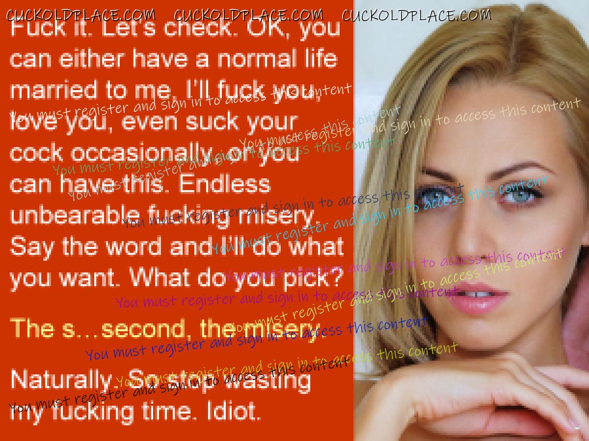 omg, damn hot, the complete ruin for a sub cuckold husband loser. Submissive Cuckold - lives for many years in a female-led marriage with a cuckold lifestyle.
