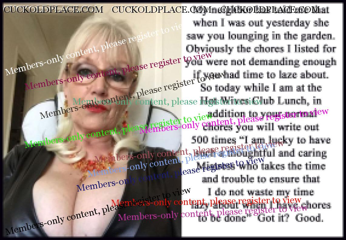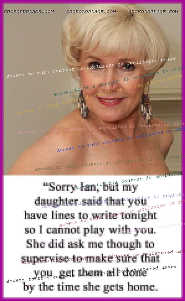 A great friend has requested some captions with the theme where the wife is out on date and the cuckold is "managed" and supervized in her absence. Here are a few that I hope might meet that requirement.
