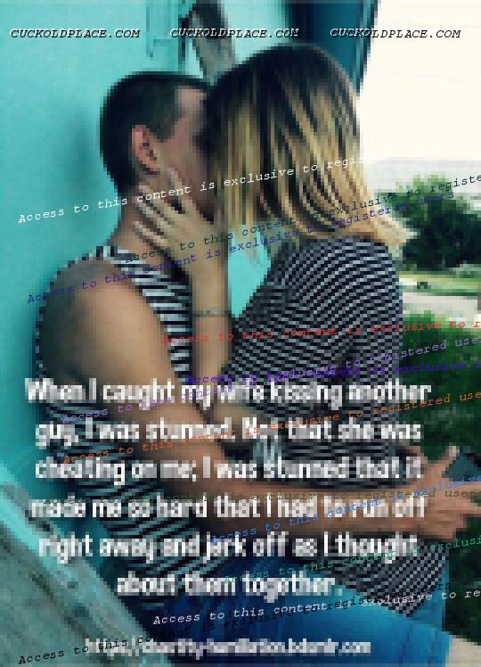 When I caught my wife kissing another guy, I was stunned. Not that she was cheating on me; I was stunned that it made me so hard that I had to run off right away and jerk off as I thought about them together.