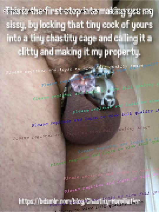 This is the first step into making you my sissy, by locking that tiny cock of yours into a tiny chastity cage and calling it a clitty and making it my property.