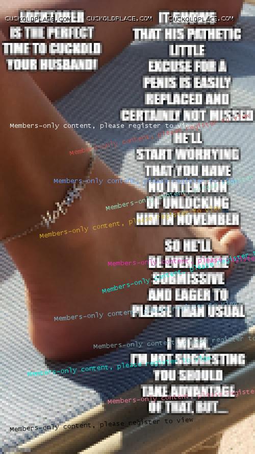 "I made it a month by month thing. First, I said that he couldn't fuck me anymore. Then I put him in chastity to control his orgasms. Next, I told him he'll never cum again. After that I said he'll never get hard again. Last night, I told him he doesn't need to have a penis anymore." He's terrified ... and docile.