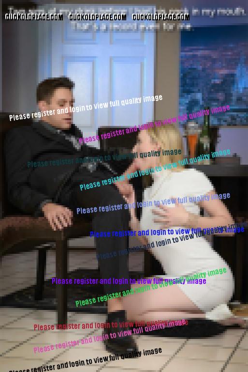 linda40: Share a quick story with you. I was cuck sitting for a young man who was very new. His wife was out with my dau ghter. We were watching some movies that were quite explicit and he had a major hard on. I took him out of his pants and slowly played with him casually while we were watching a very intense scene with three men and one woman. I was going to tease him and then deny his orgasm. To add some spice I decided to give him a treat and took off my blouse and bra. He loved my tits and begged to lick them. I let him do that still playing with his cock. He started begging me to let him cum and I just laughed and told him no. He was frantic to cum and begging me to let him cum on my tits. Then he said in a very submissive voice that he would lick his cum off me. I pretended to think about his offer while I shifted my position so his cock was rubbing on my nipple. He was begging to cum and I told him he could and almost immediately he was covering my breasts with his cum. He shot a huge load and I made sure my nipples were heavily coated. Then I moved up and placed my nipple next to his lips and watched as he slowly extended his tongue to lick the cum off it. That's how his wife and my dau ghter found us moments later. His face licking cum off my breasts. Needless to say it was a fun evening with the three of us ladies talking about the evening while her cuckold waited on us with dried cum on his lips and face. Later that night he was punished for cuming with his wife's permission. But that is another story. What a lovely story! Also it was very good that his wife gave him a punishment afterwards. How would he ever learn otherwise.