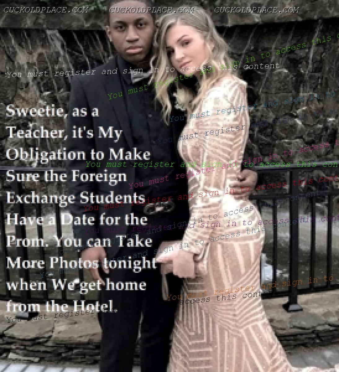 I'd happily pay for dinner and their hotel room. My shy, inexperienced girlfriend has slowly revealed a previously suppressed interest in black men to the point that I have managed to encourage her to chat online to what we now call her 7 black "boyfriends". She seems particularly taken by the attention she's being paid by her latest one, who's only 25, 20 years younger than her and a year younger than her s0n. I'd be more than happy for them to take things further. I'm sure he wants to. Peter C