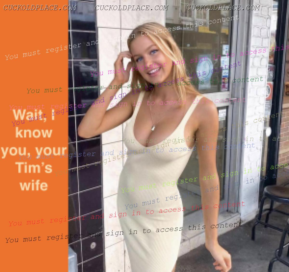 #53, photo 4 : "Mutton dressed as lamb". My wife was wearing shorter and shorter skirts and lower cut tops throughout her 30s and into her 40s. I was 7 years older than her, but she confessed to having a thing about much younger guys, maybe early-mid 20s. The day after her 35th birthday she went out on a date with a lad of 23, a customer at the shop she worked in, and after a few dr1nks it was back to his place where he fucked her 3 times. Years later, at 44, 45, my wife also pulled a 25 year old soldier and a 28 year old security guard.