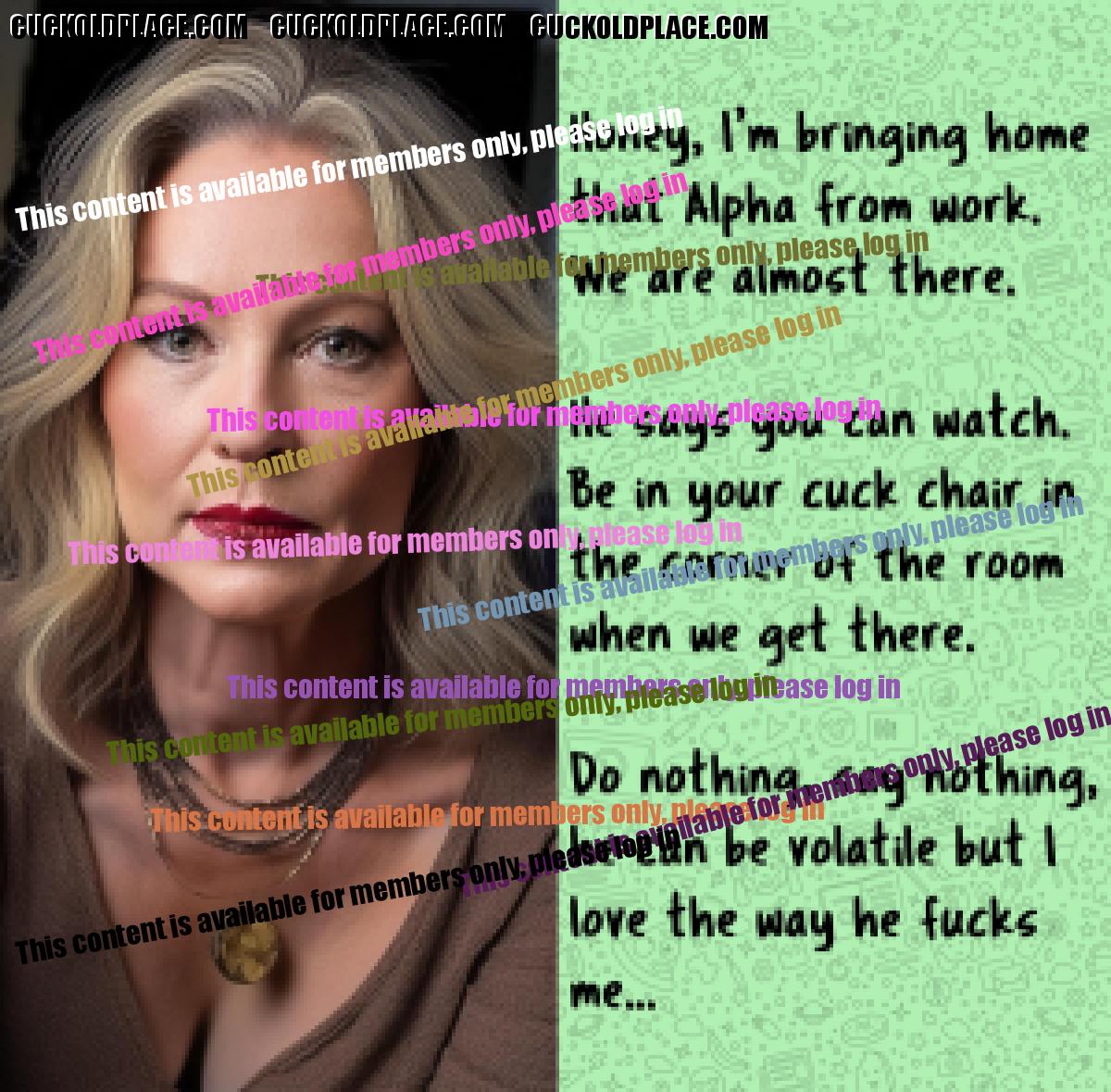 She's not strayed in forty years but when her husband brought home an Alpha workmate she gave in to his advances within the hour...