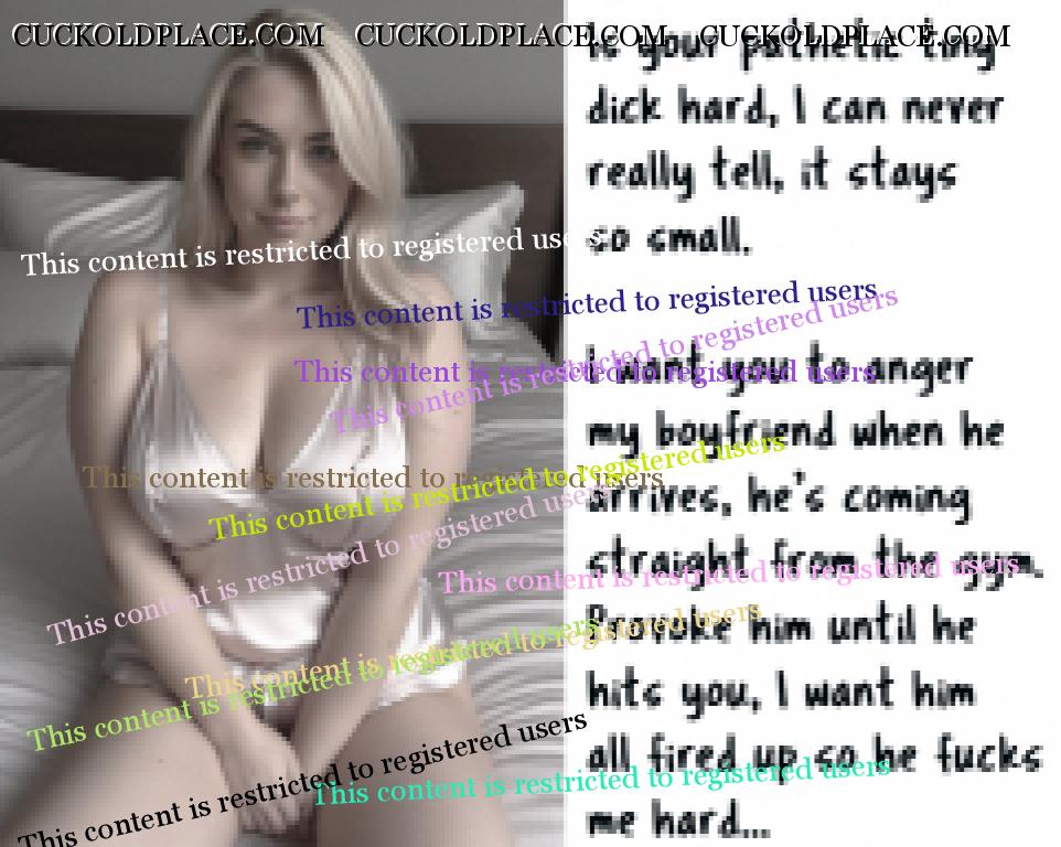Fredsub: Wow, these are so good. Thank you. I agree. I guess it's good for all the submissive cucks of us. please keep posting . Submissive Cuckold - lives for many years in a female-led marriage with a cuckold lifestyle.
