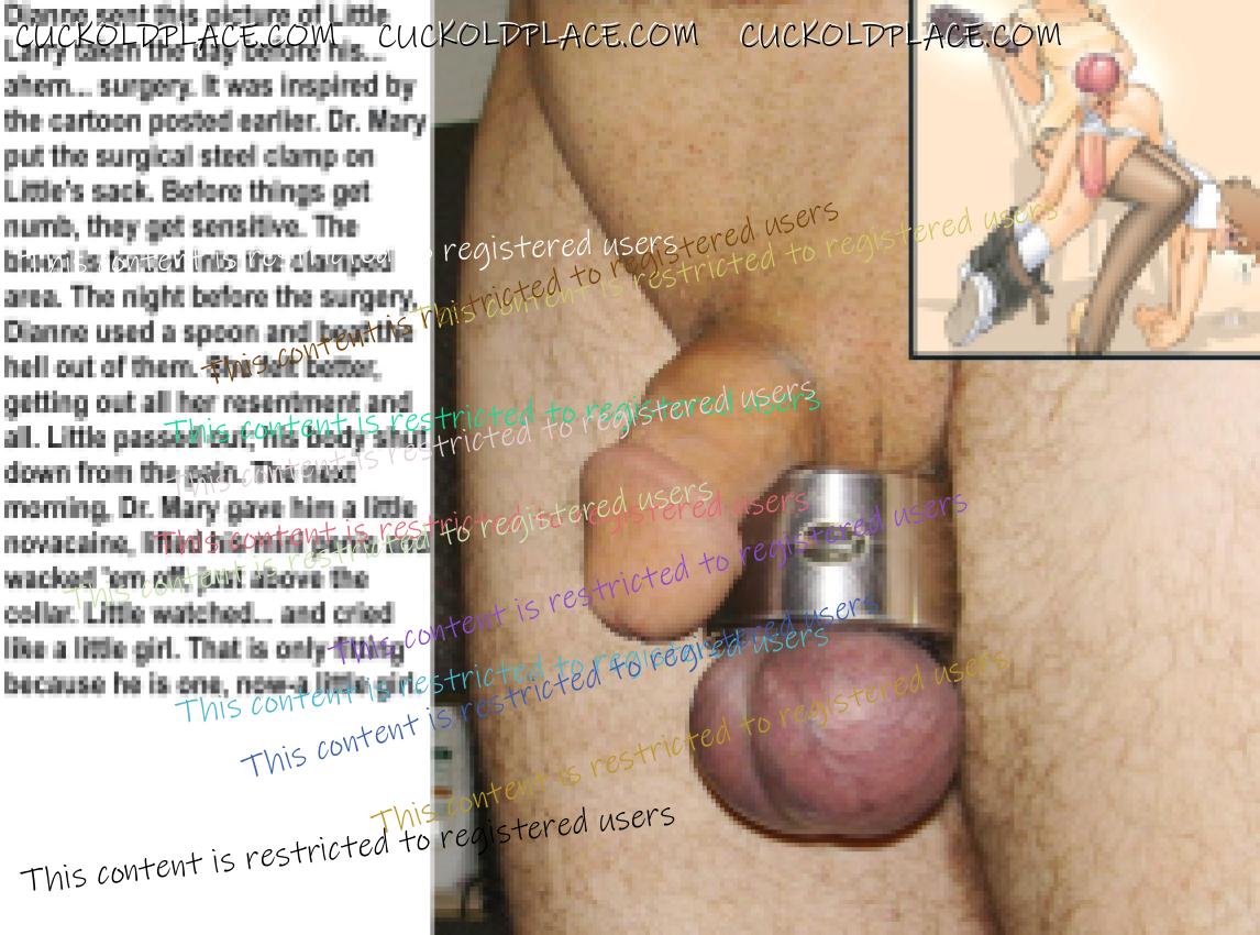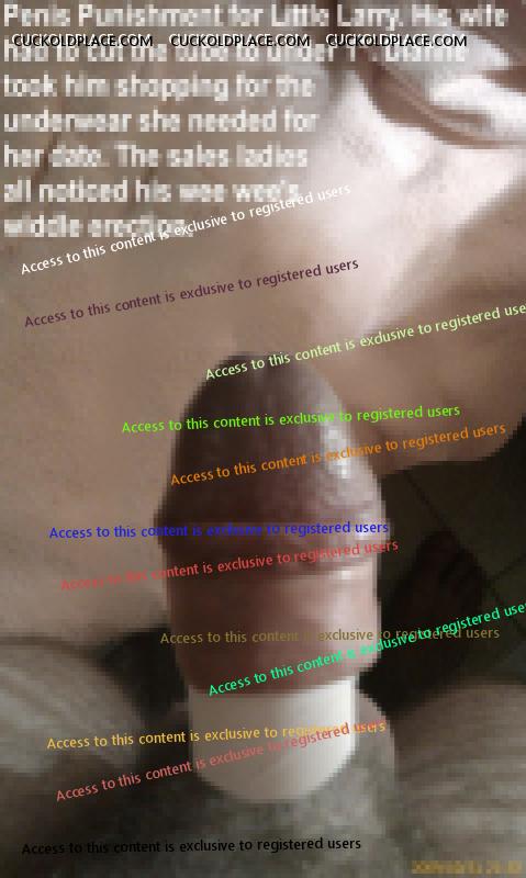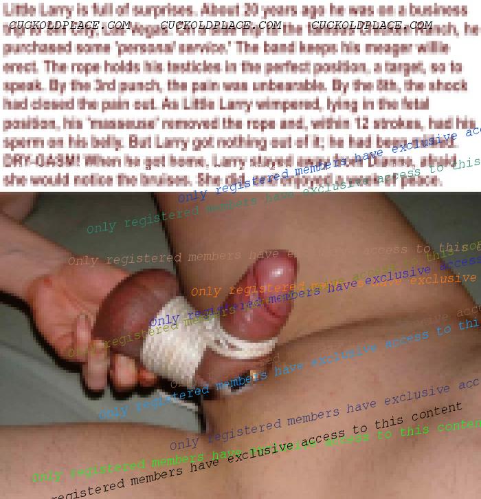 Little Larry is afraid of his wife. She no longer gives him sex, but he is required to eat and clean both of her holes. He doesn't think she has found a stud (yet) but he can never be sure. WThat about his tiny wee wee? Should Dianne still let him beat off? Would he look good in a cock cage? Tell him what you think and don't be kind. He doesn't deserve it.  Tiny penis-you can't call it a cock!