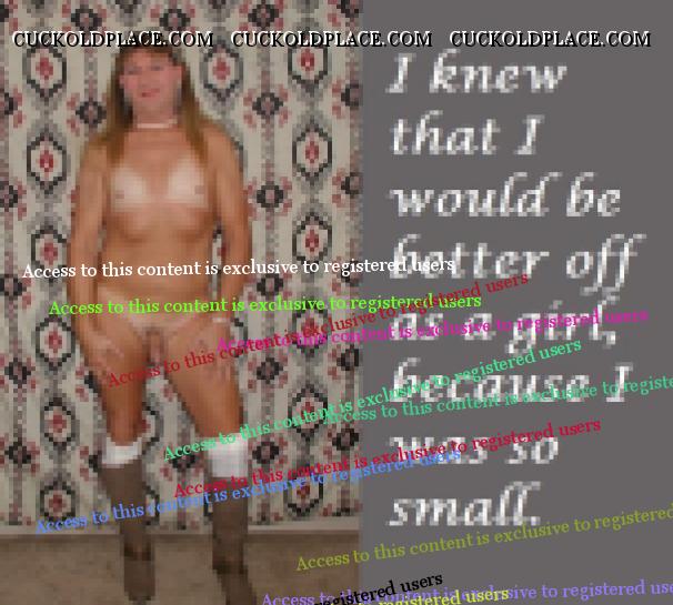 I had a girl come up to me lastnight at work and asked me if I knew Kenny. I told her I knew him but have never met him. I told her he was going to fuck my wife and my ************ for me because I was not man enough to do my wife. She said honey you can take one look at you and tell your no man. The people I work with did not know Dee got rid of me for a real man but they do know and I am a laughing stock at work. All because Kenny told them Dee left me for a real man that can take care of her in the bedroom. I am proud to be a sissy I love everything about being femme and will be a sissy the rest of my life. I am tired of trying to be a man when that's not what I was born to be. I have always felt comfortable on my knees serviceing a man or bent over with him deep in me. Teri