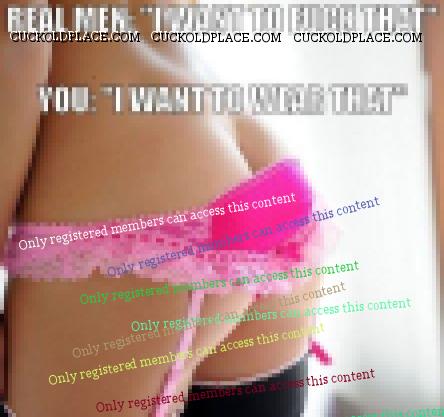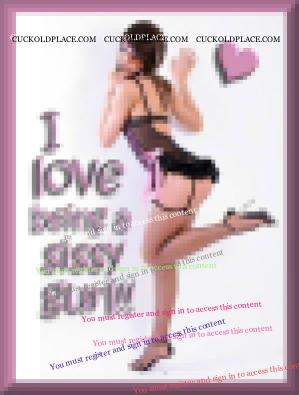 Master I went up to Maegans to look at some of her clothes before she took them to goodwill. When I got there a friend of hers Lori was there I was kinda embarrased when she introdeced me as her **********. James was there and had to go to another rom for a laugh I'm sure. Me Maegan and Lori talked for awhile then Lori said she had to leave to go t work. Maegan said the clothes are in my room come on. I followed her to her room and there was a pile of clothes on her bed. She was helping by holding up dresses and saying I think this will fit. I asked her if she had any underwear or bra's I needed some. She said yeah I am getting rid of these over here in this drawer help yourself. With that she said what size shoe you wear. I said I wear a 9 in laidies. She said oh to bad I am a 8 and I have 2 pais of boots to get rid of. They were nice come fuck me boots they were high black and leather. She said I will leave you alone and let you try stuff on with that said she left and told me I could lock the door. I undressed picked out 4 sweater dresses and skin tight black hoses, 3 skirts and 5 nice blouses, I picked out 11 pair of underwear,7 bras and 4 pairs of jeans. When I was going thru the drawer I found 2 bikinis one was white and one pink. I cracked the door and asked her if she was getting rid of them. She said yes everything in that drawer. I tried on the stuff I picked out and folded it as I took it off. I only tried on one pair of panties and one bra because they were all the same size. I knew they would fit Maegan has given me panties and bras when she lived at home. She has known I was a sissy since me and her ****** got married. She has seen my girly bedroom and knows about John. I am sure being a GG she dont blame her ****** for fucking John. When she lived at home John spent the night with her ****** alot. Teri