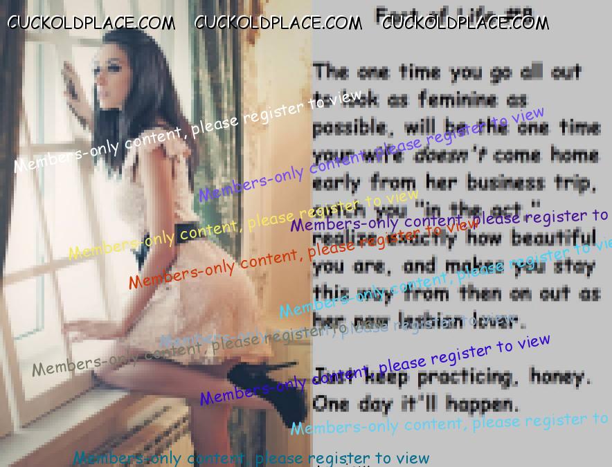 Last night me and Dee had a heart to heart talk. She asked me what I thought of James ( Maegans boyfriend ) I told her I thought he was a goodguy and asked why. Dee talks to James some by text on her phone. I asked her if something was going on between her and him. She said no he is my ********* boyfriend but he has alot to say about you. I asked like how and she said I think he is homophobic. I said what makes you say that she showed me some conversation between them and he was telling her that she should divorce me and let John move in with me. I asked her how she felt and she said she needs a man in her life not another girl. I asked her what that meant and she told me she wanted a divorce. I was upset but she was right I am not a man and a woman needs a man. I for one should understand that. She told me she has been thinking about a divorce for 8 months now and talking with John. He has been telling her things like if your not happy then she needs to let me go to be the girl I want to be. She told me she is going to stay with John until the end of Feb and she wants me to find my own place by then. She will be over at John place sucking cock and taking it in ever hole while I am out looking for a apt. I said look at me who is going to rent to a fag. She said Teri thats not my problem sorry. I called my boyfriend and he is letting me move in with him but I got to be his wife 24/7 clean, cook, do laundry, and take cock so I will be out by the end of the week. John wins he took my girl but it wasn't hard. Teri