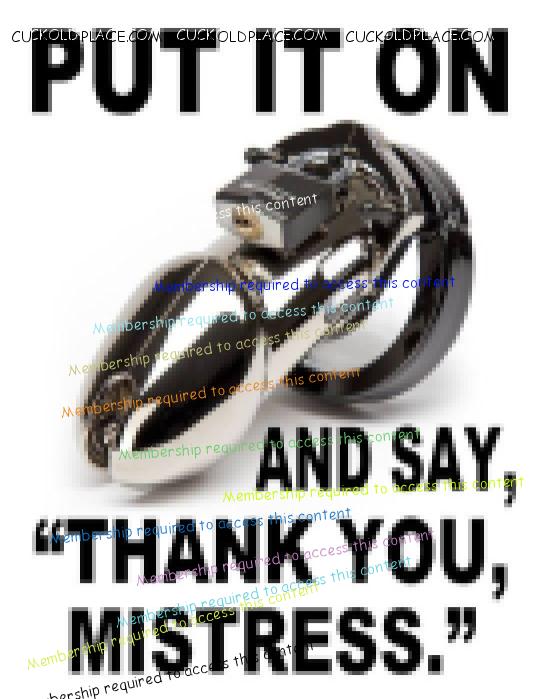 Your girlfriend: You can stay and watch if you want to. But you have to eat his sperm out of my bald pussy when he's done fucking me. You stayed and watched and ate her lover's sperm out your girlfriend's well fucked bald pussy. Oh and your penis tried to get an erection in its pink cage and ejaculated without it even being touched. They both laughed when they saw that.