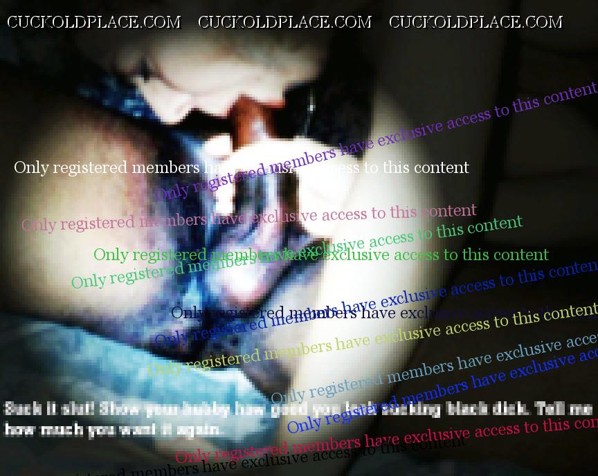 " Now suck my black dick"! I took his cock into my mouth and started sucking him and licking his cock all over, cupping his big balls in my hand as I sucked him. He took my head in his hands and started fucking my mouth. " Man your wife really knows how to suck cock! Look how good she looks with my black dick in her mouth"! I loved hearing him talking to hubby that way as I sucked and licked his big cock. He pulled me up and kissed me and told me to lead him to our bedroom. I led him to our bedroom and pulled him down on the bed with me, feeling his stong black body against my married white body. He spread my legs wide as he knelt between them and started playing with my pussy. "Man I've got to taste that white pussy"! I watched as he lowered his face to my pussy and felt him kiss my pussy lips, then slide his tongue deep into me. "Oh God, thats good!' He kept eating me and fingering me until I was cumming all over his face and hand. I am a squirter and was shooting my juice all over him and he was loving it. I covered his face with my juice. He turned to my hubby and said" Look how your wife is cumming all over my face"! Her pussy taste so sweet." He pulled his fingers from my pussy and licked my cum off of them while hubby watched. He ten slid up and rubbed his big cock all over my pussy and made me cum somemore. " Look at your wife's juice all over my black dick! She reall needs this black dick"! "You are such a hot slut! Take my dick and put it into your married pussy. I guided his big cock to my pussy and felt the head of it slide into me. " Yes, fuck me!" He was so thick that we had to really work to get it all inside of me, but after a few min. he was fully inside of me and he felt great. "Damm, you are so tight"! I love how your pussy is sucking at my black dick". He fucked me like that for a few min. then pulled out grabbed my head and said" Take my cum slut, swallow this black seed"! I sucked him and swallowed his cum as he kept shooting it into my mouth. Then he shoved it back into my pussy. "Now I'm going to give you the fucking that you need and the next load is going deep in your pussy". He fucked me in many different positions for the next hour, making me cum many times on his cock until true to his word he shot his load deep inside of me. He just kept cumming in me until his cum was running down the crack of my ass. I had never had anyone cum that much in me before and I loved it. After laying on me and letting me enjoy feeling him go soft inside of me he pulled out and cum flooded out of me everywhere. "Now Hubby get down there and clean all my black seed from your wife's pussy! Enjoy sucking a blackmans cum from your wife's cunt and know that it is now black owned." I layed in Kel's arms kissing him as my hubby sucked his cum from my pussy. When hubby was done I thanked him, then told him to go to the spare bedroom because Kel was going to spend the night with me. I didn't see hubby again until the next afternoon, but did suck and fuck Kel many more times before then. When Kel left the next day I knew that I loved him and what he did to me and would always be available to him.
