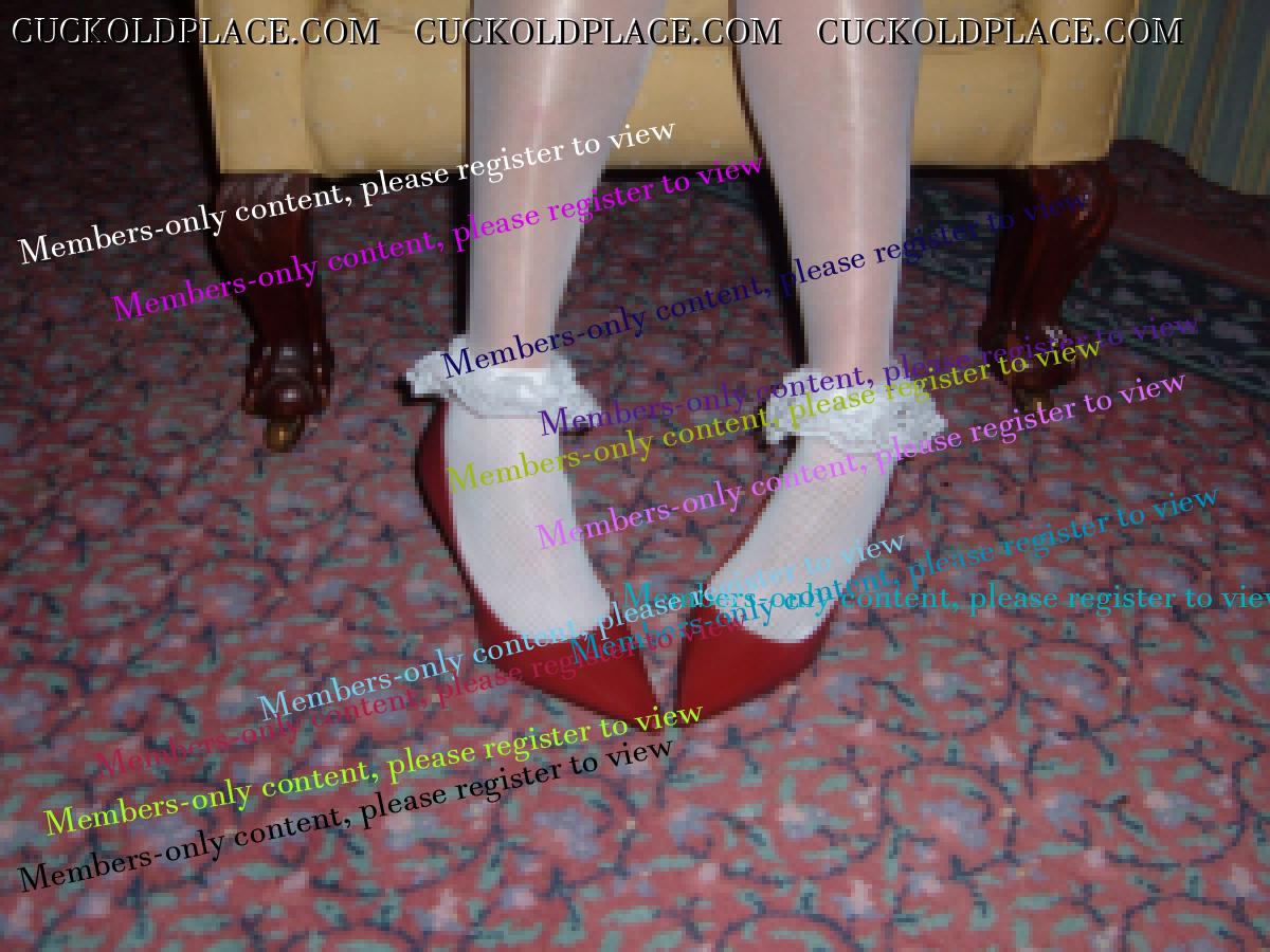 I had to work through the night to get his place even half decent and I was arelax on the couch when my wife and her lover turned up. She woke me with a slap across my face which must have left a red hand print. 'What the fuck do you think you're doing? You lazy piece of cuckolds brownie! Get up and make us some breakfast. Now wanker!' I loved it when she spoke to me like that. It just made me melt into a puddle of submissive adoration for her. I took the risk of kissing her shoes and apologising before I scampered off to the kitchen. I have attached a picture of them that John had taken earlier at my house. They had breakfast at the kitchen table with me under there kissing her feet and sucking those perfect little toes. Then they gave me the picture to look at while they went to his bedroom.