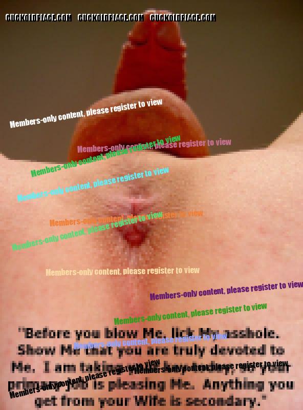 my Wife has an steady lover, named Peter. He fucks Her two or three times a month. He has a lovely 9" cock to please Her, and He surely does! She informed me last week that before i am going to be allowed to cum, i am going to give Peter a blow job, along with performing many other perversions. i am terrified! i had served Her faithfully, i thought to Her satisfaction... and now this? i am NOT gay! i have looked forward for so long to ejaculating, and this really stuns me. Yet, whenever i think about it, my penis tries to get hard in its cage. Why? i don't understand. Now my Wife is teasing me every night about becoming a cocksucker.
