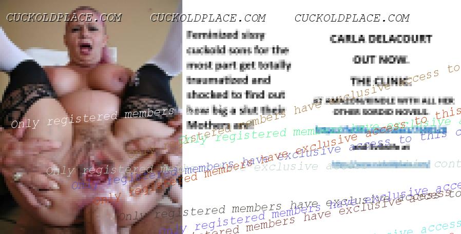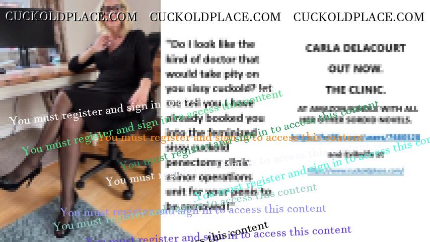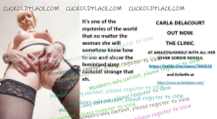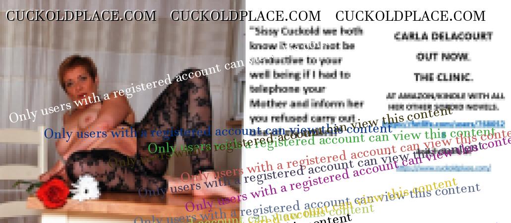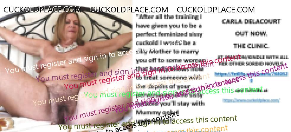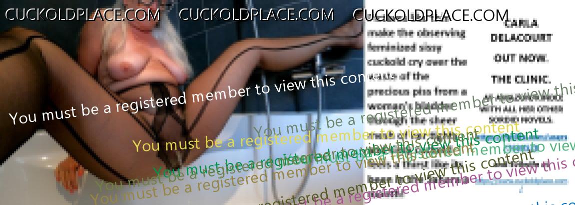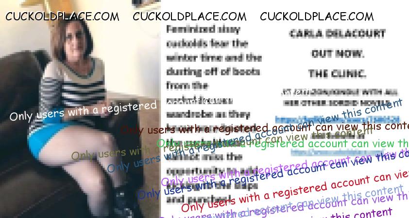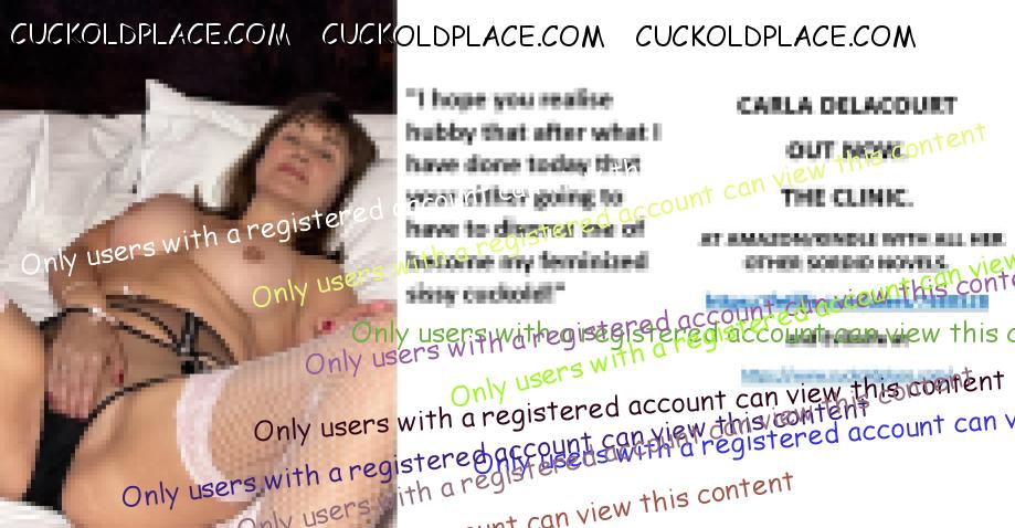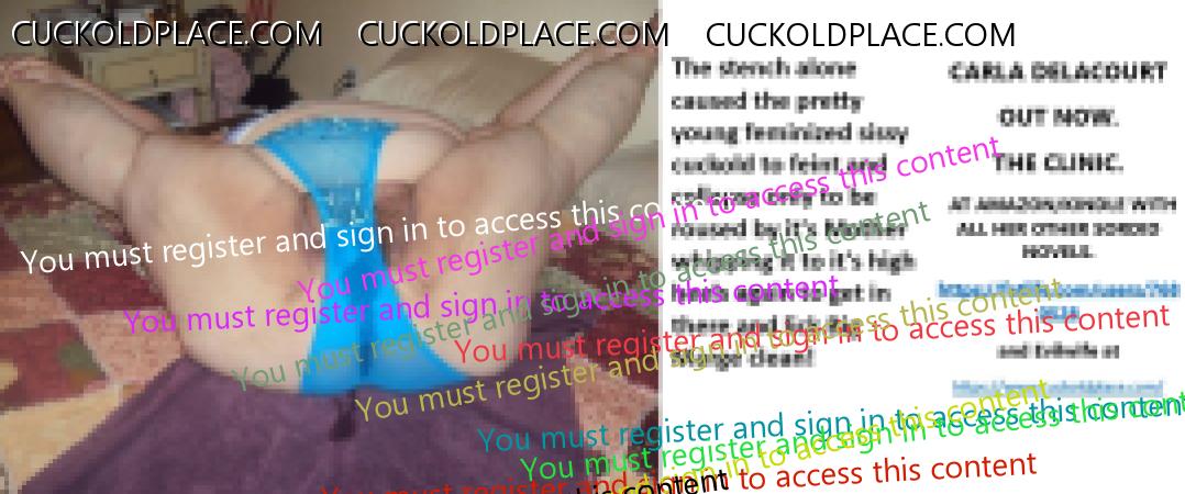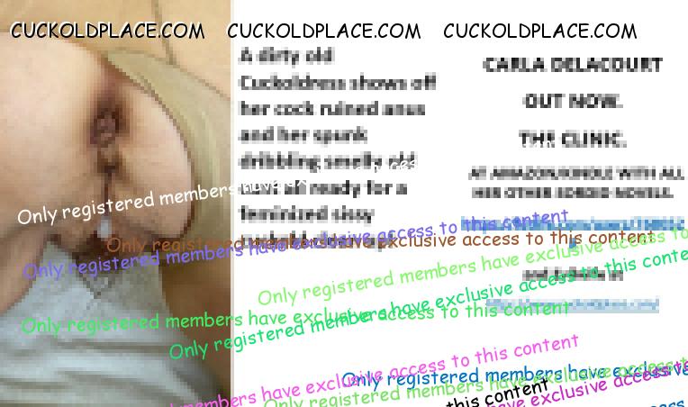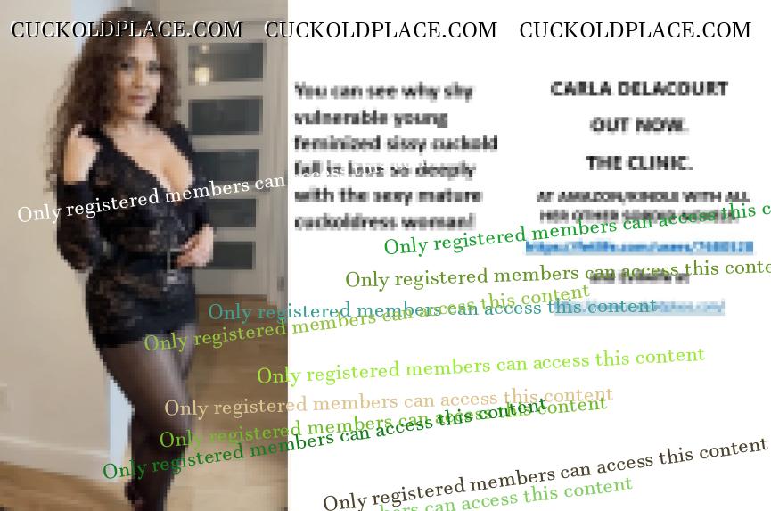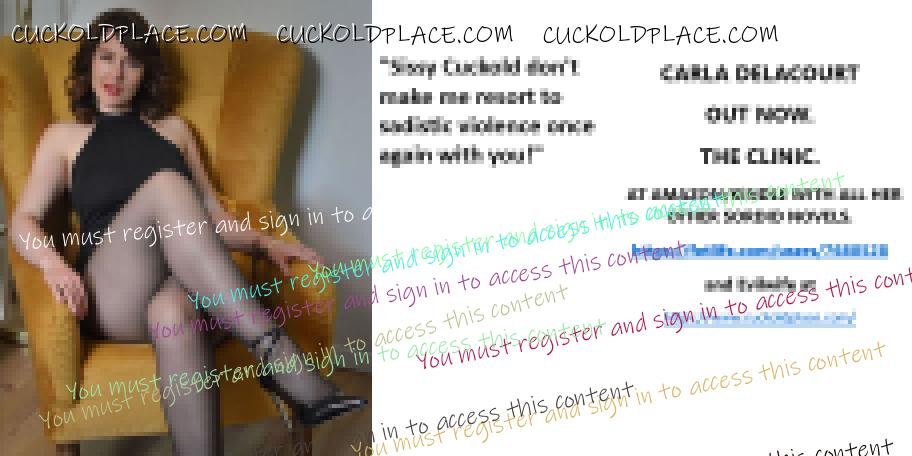 CARLA DELACOURT OUT NOW. THE CLINIC. AT AMAZON/KINDLE WITH ALL HER OTHER SORDID NOVELS. The hyperlink is visible to registered members only!and Evilwife at https://www.cuckoldplace.com/SISSY CUCKOLD HISTORY 891. You know you're a full blown feminized sissy cuckold when you discover the feeling of seeing someone you like going off with other men and you get aroused by the *********** even if the said girl does not even know you adore her. From the moment we start our dressing up and it aids our dirty naughty little masturbation sessions we know there is something wrong with us and fiddling with ourselves is a shameful bad naughty thing that we really should not be doing to ourselves but cannot help it. Worse if a woman catches us dressed up and wanking because their reaction to our perverted cavorting's will instil a deep-seated shame and *********** in us that we are not good enough to be allowed to masturbate so by default there is no possible way we should be bothering women for sexual intercourse. Even before we discover what we are most feminized sissy cuckold know that they are small and underdeveloped in the manhood stakes and it becomes in bred into us that we must help and support women have sex with real men our only role to serve the lady and clean her up.